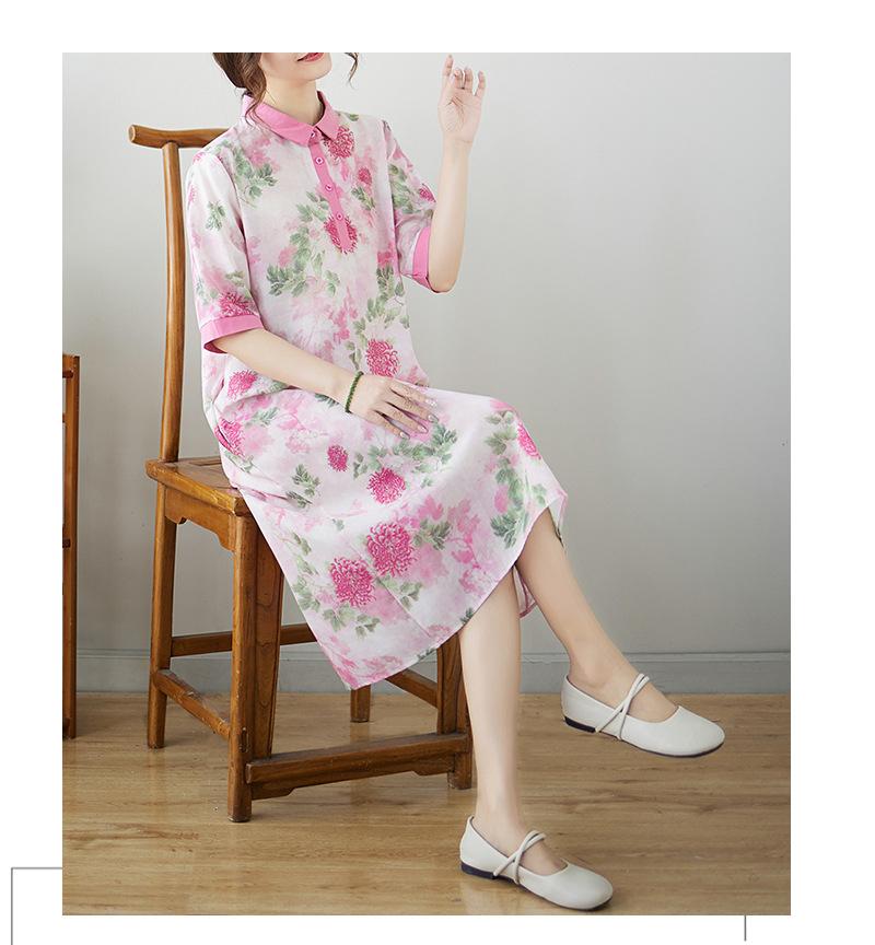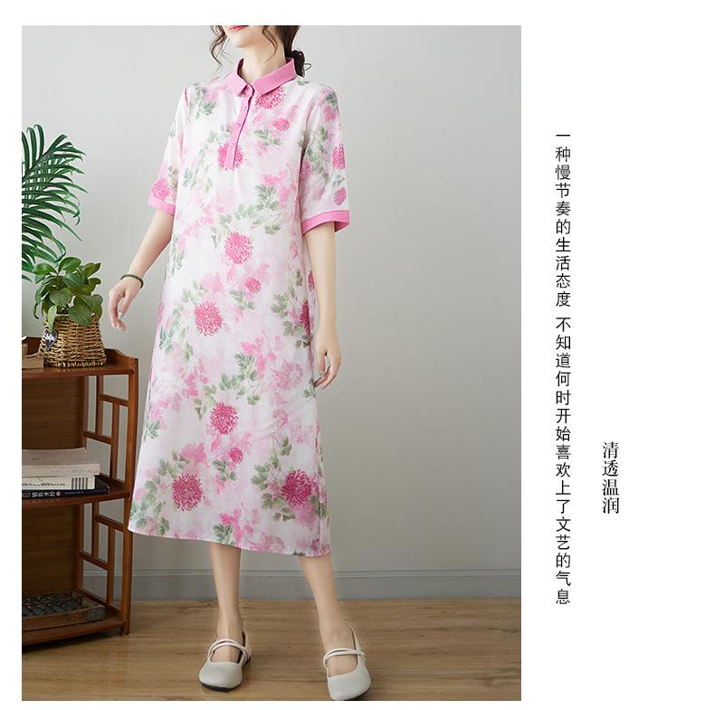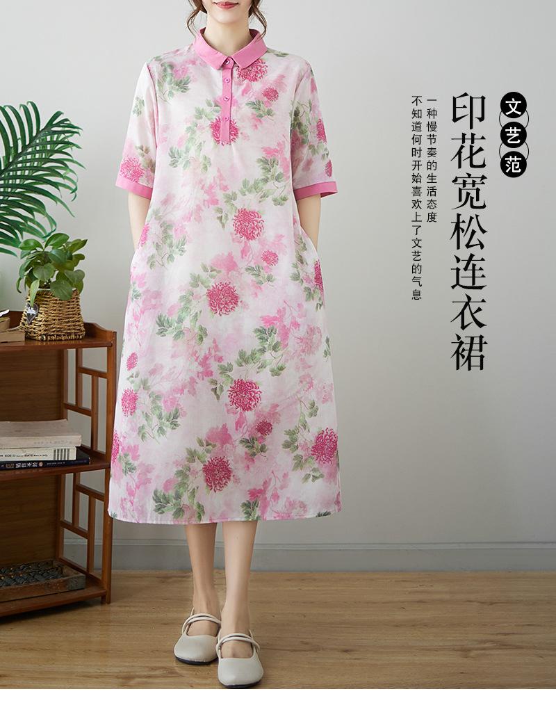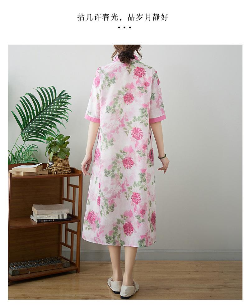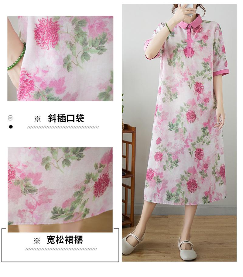 Foto Real Vestido Floral Elegante de Algodón y Lino de Alta Gama para Mujer Verano Estilo Occidental Estilo Francés Retro Suelto Adelgazante