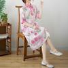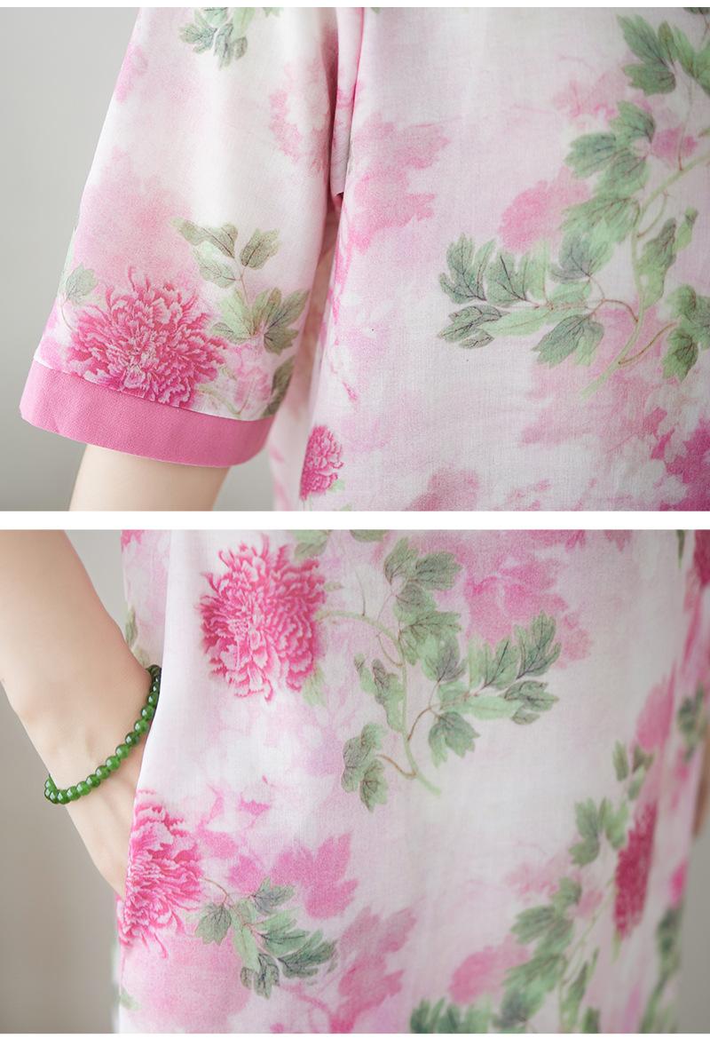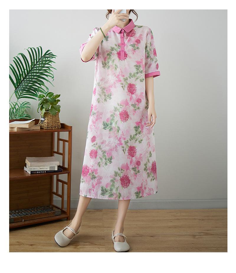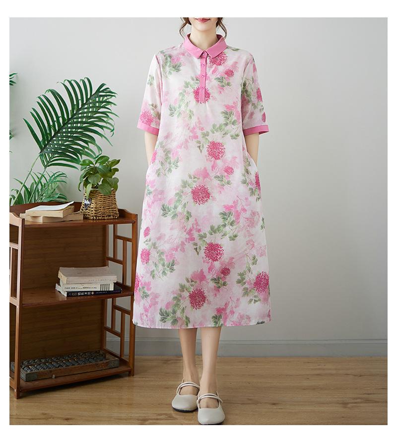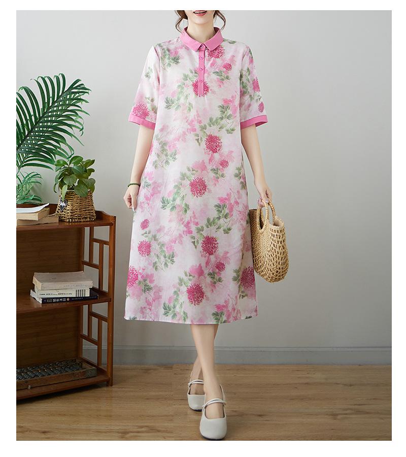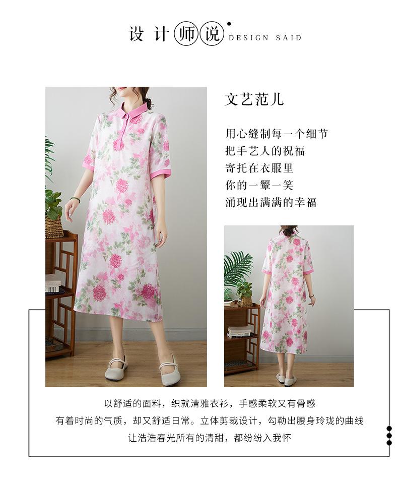 Foto Real Vestido Floral Elegante de Algodón y Lino de Alta Gama para Mujer Verano Estilo Occidental Estilo Francés Retro Suelto Adelgazante