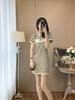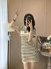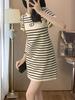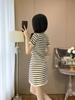 Vestido de verano pequeño, nuevo, a la moda, retro, a rayas, de manga corta, sencillo, informal, adelgazante, con cuello redondo y recto.