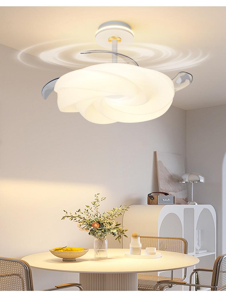Lámpara de ventilador colgante lámpara de comedor viento crema habitación nueva lámpara de ventilador de dormitorio simple moderna burbuja sala de estar mesa de comedor candelabro