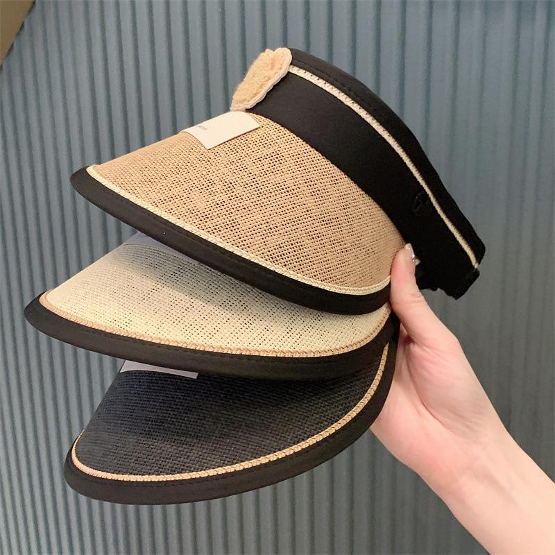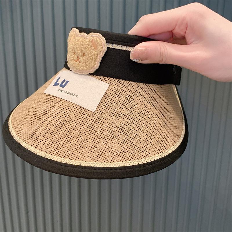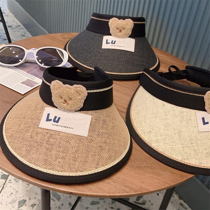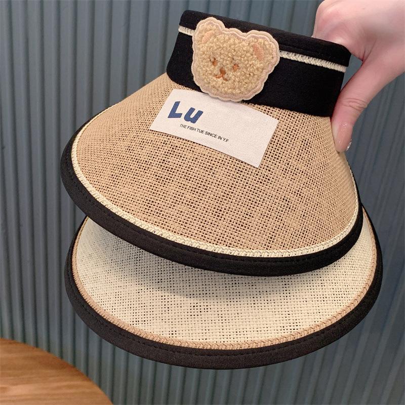 Sombrero de Protección Solar para Niños Verano Sombrero de Paja de Ala Ancha para Niños y Niñas Sombrero de Sol para Bebé de Oso Sombrero de Copa Vacío Sombrero de Sol Moderno