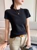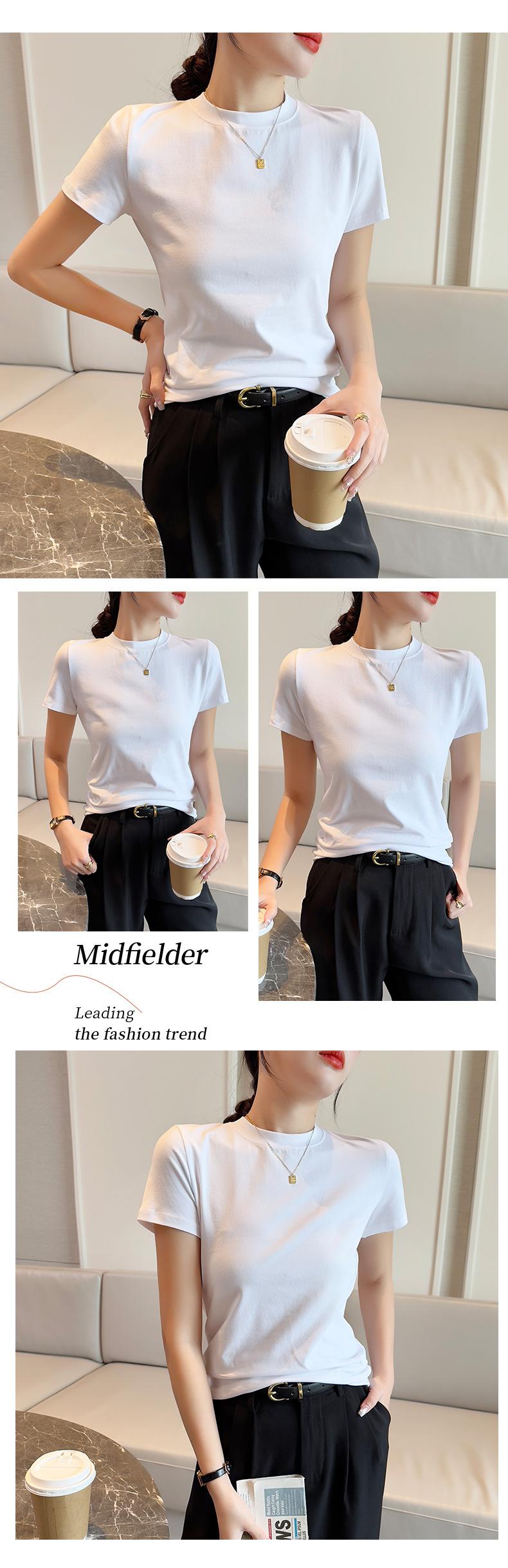 Una generación de camiseta de algodón de manga corta para mujer verano nuevo ajuste ceñido ajustado cuello medio alto largo hasta el hombro chaqueta básica