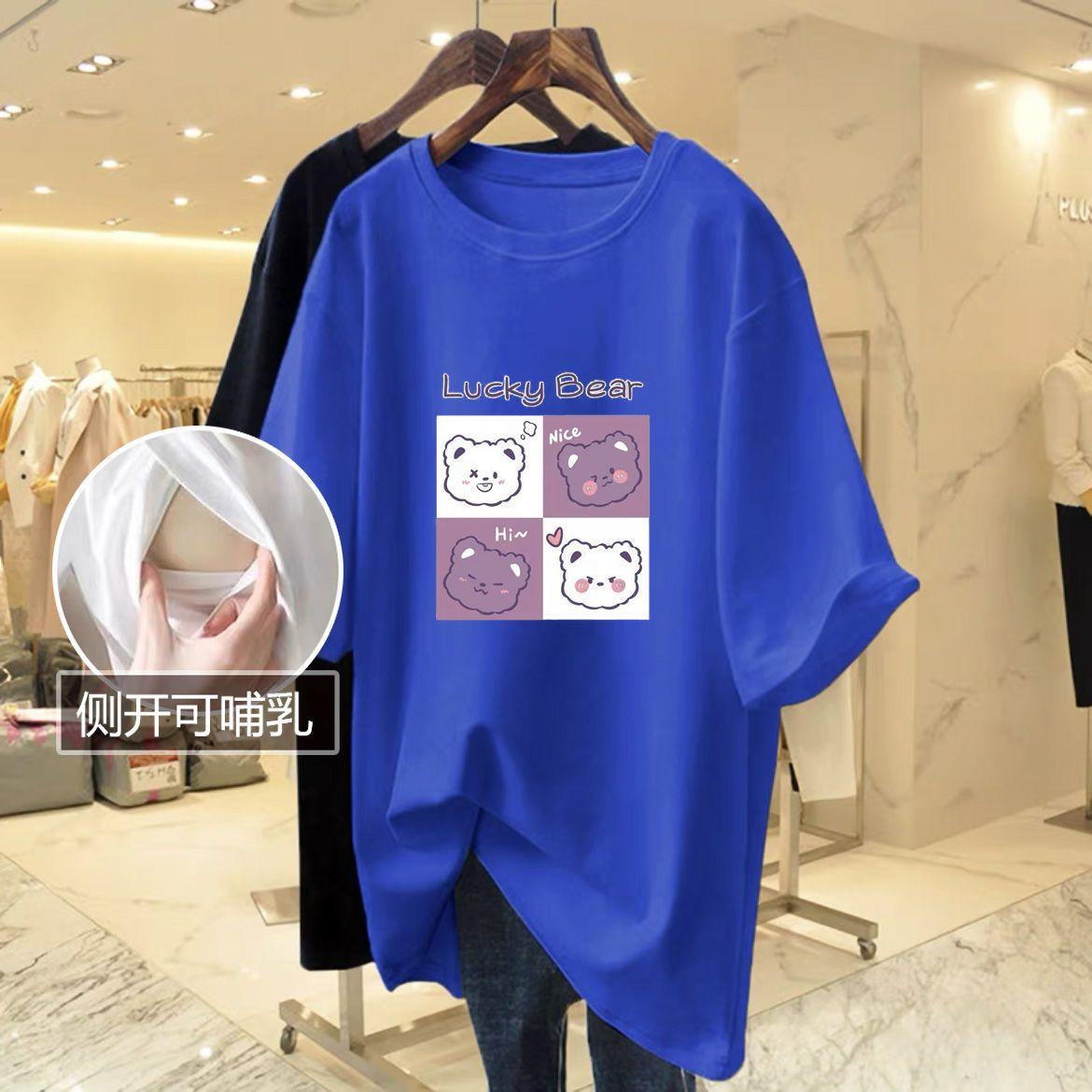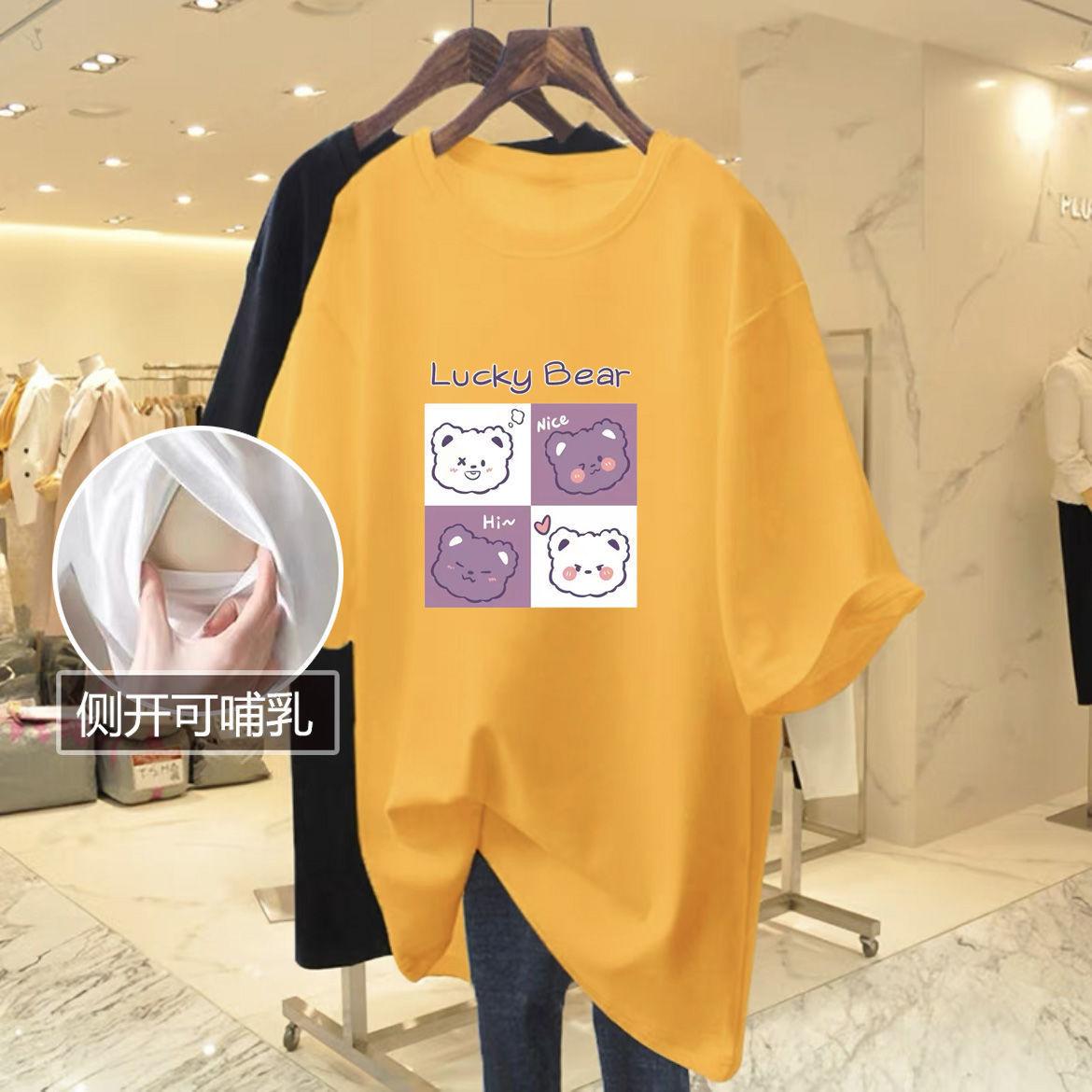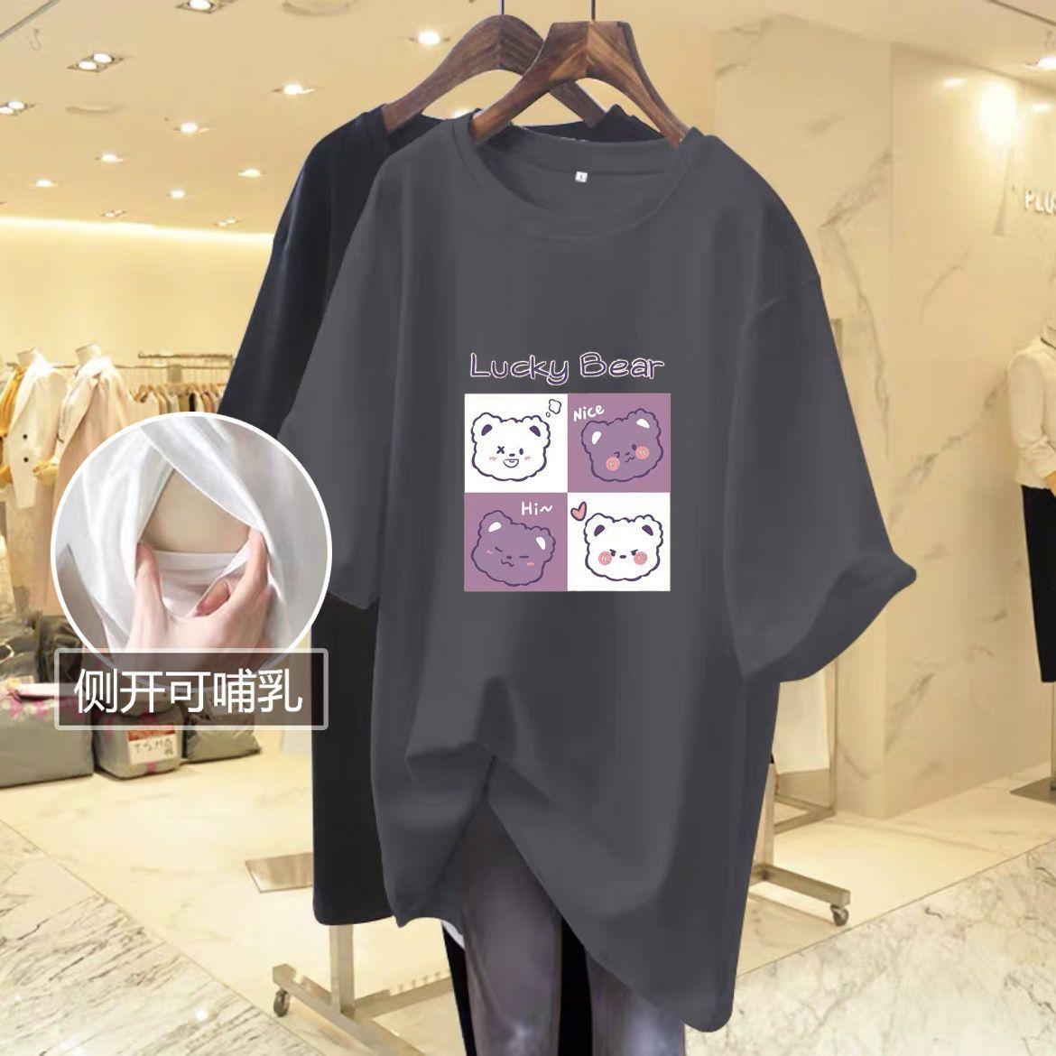 Ropa de lactancia, camiseta de manga corta para mamás calientes, ropa de lactancia, top de verano, ropa de lactancia de verano con abertura lateral