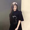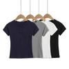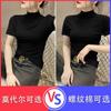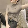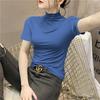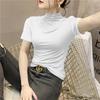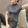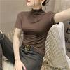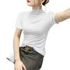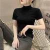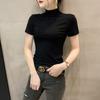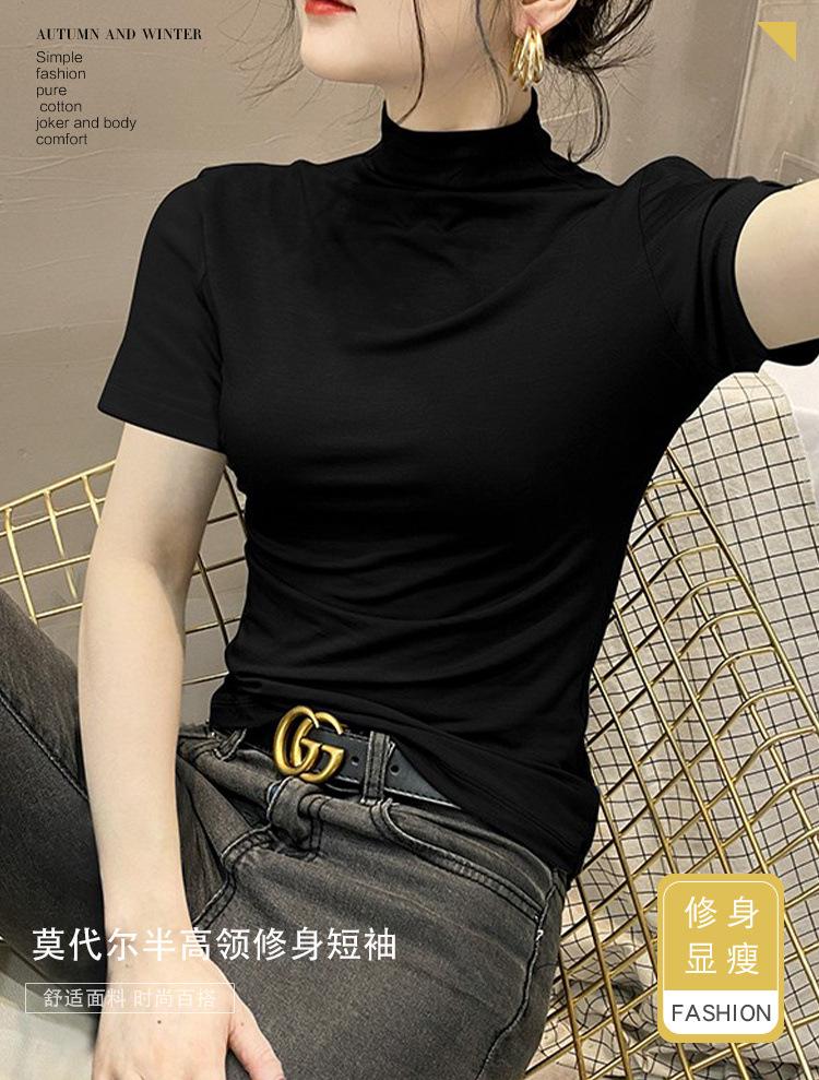 Camiseta modal negra para mujer, de manga corta, nueva camiseta de verano con cuello medio alto, ajustada y moderna.