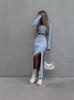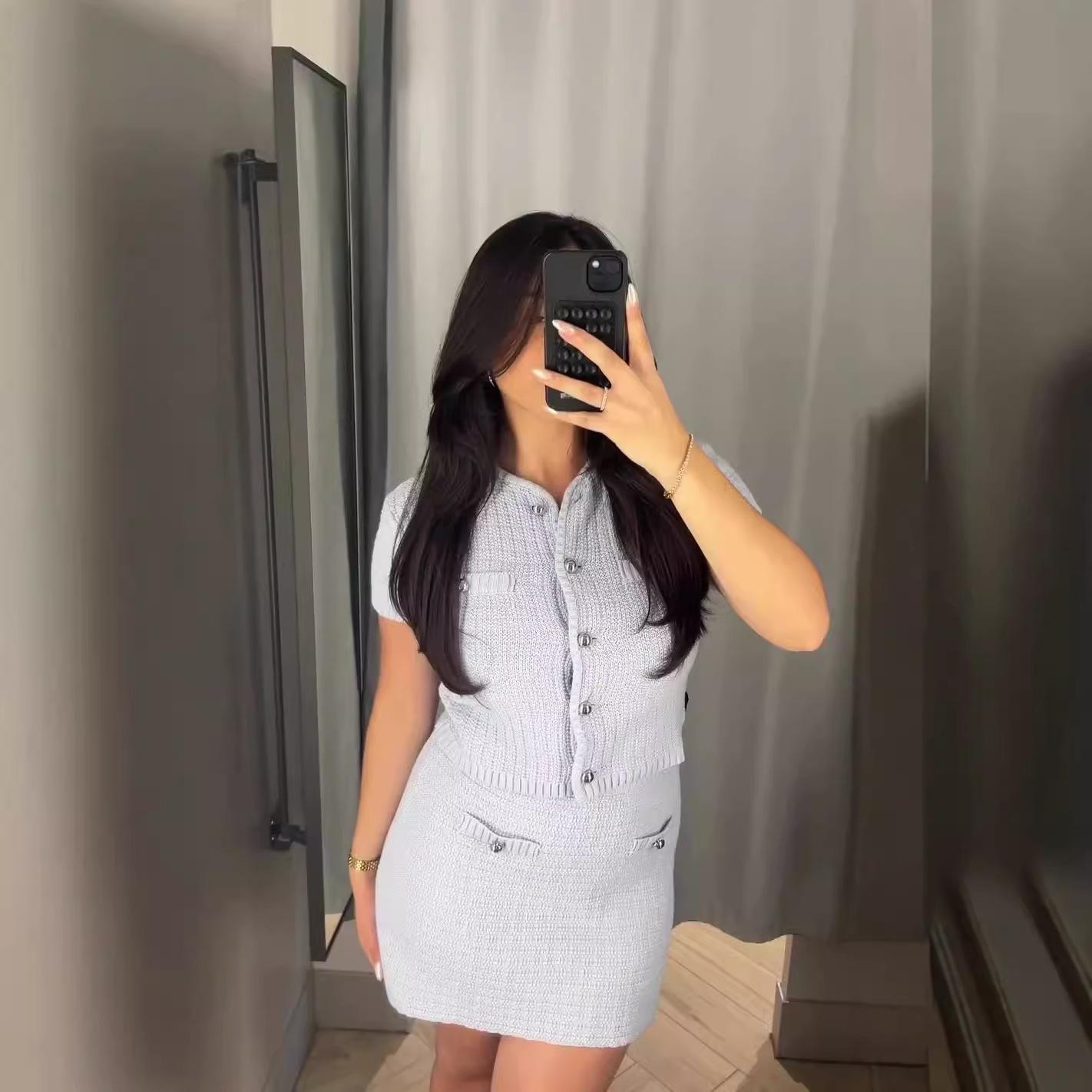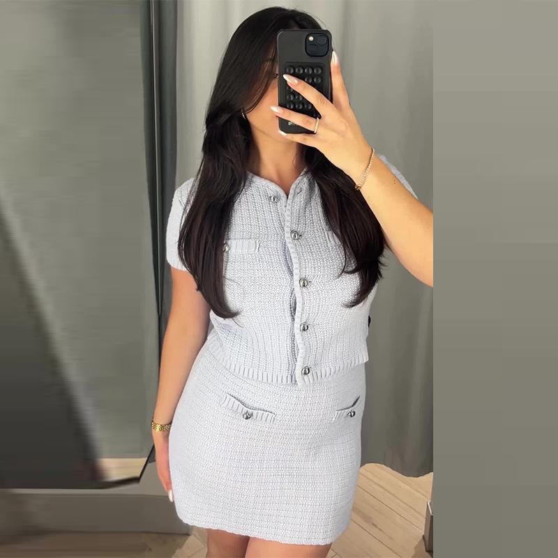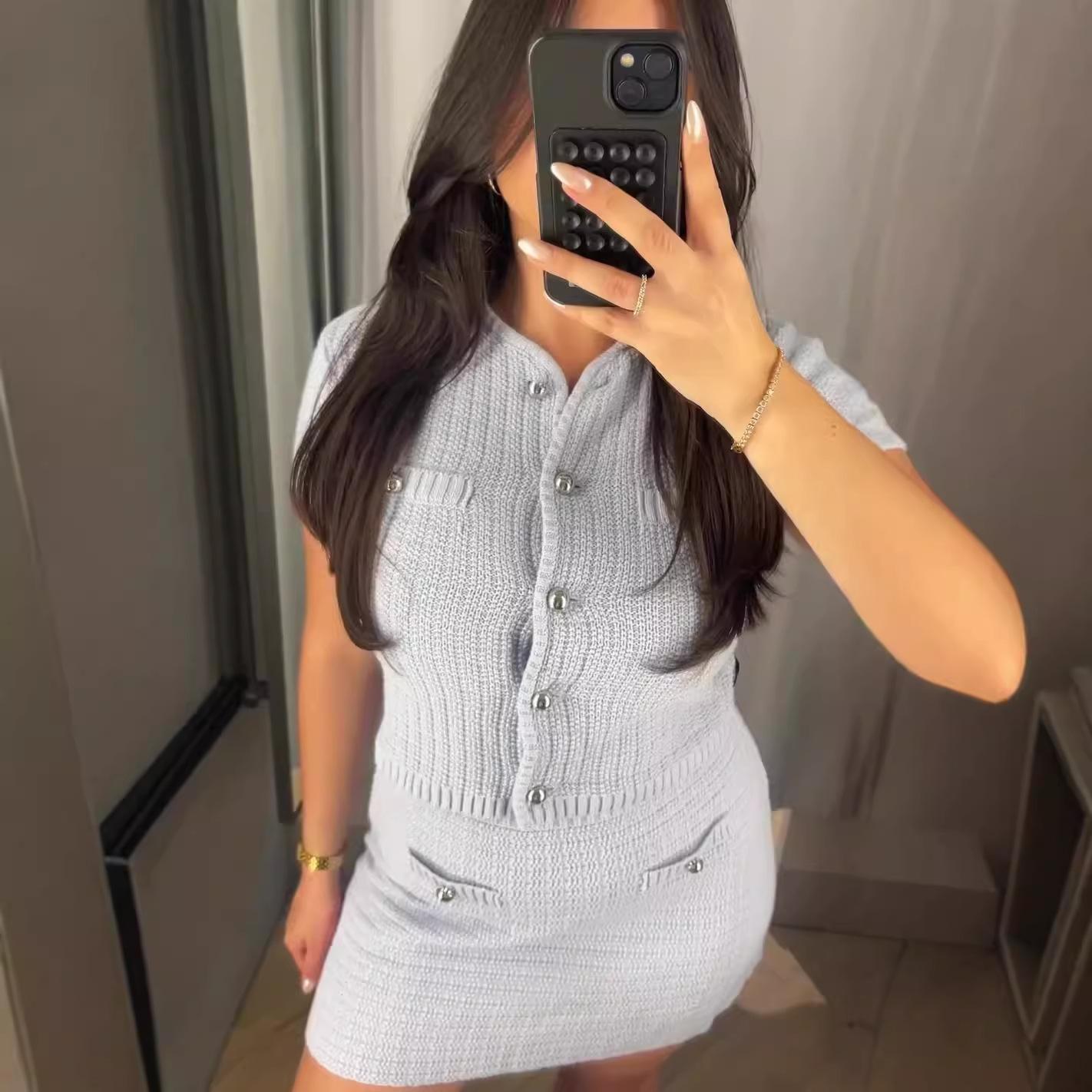 Conjunto de dos piezas de top de punto ajustado de color liso para mujer, falda a la cadera, Amazon transfronterizo de Europa y América, novedad de verano de 2024