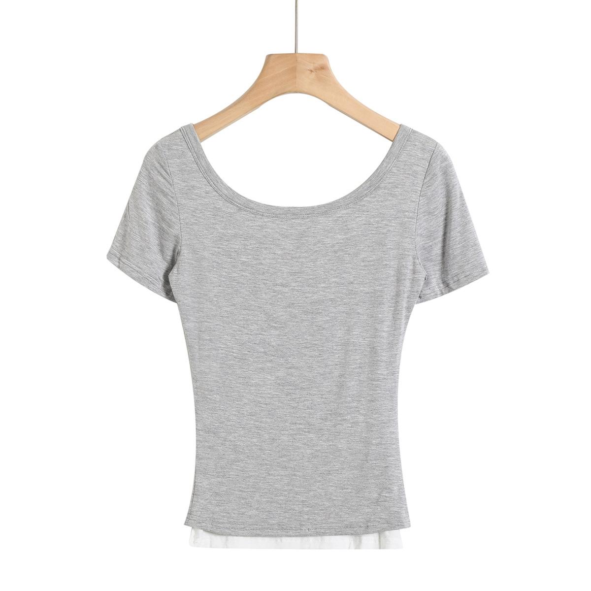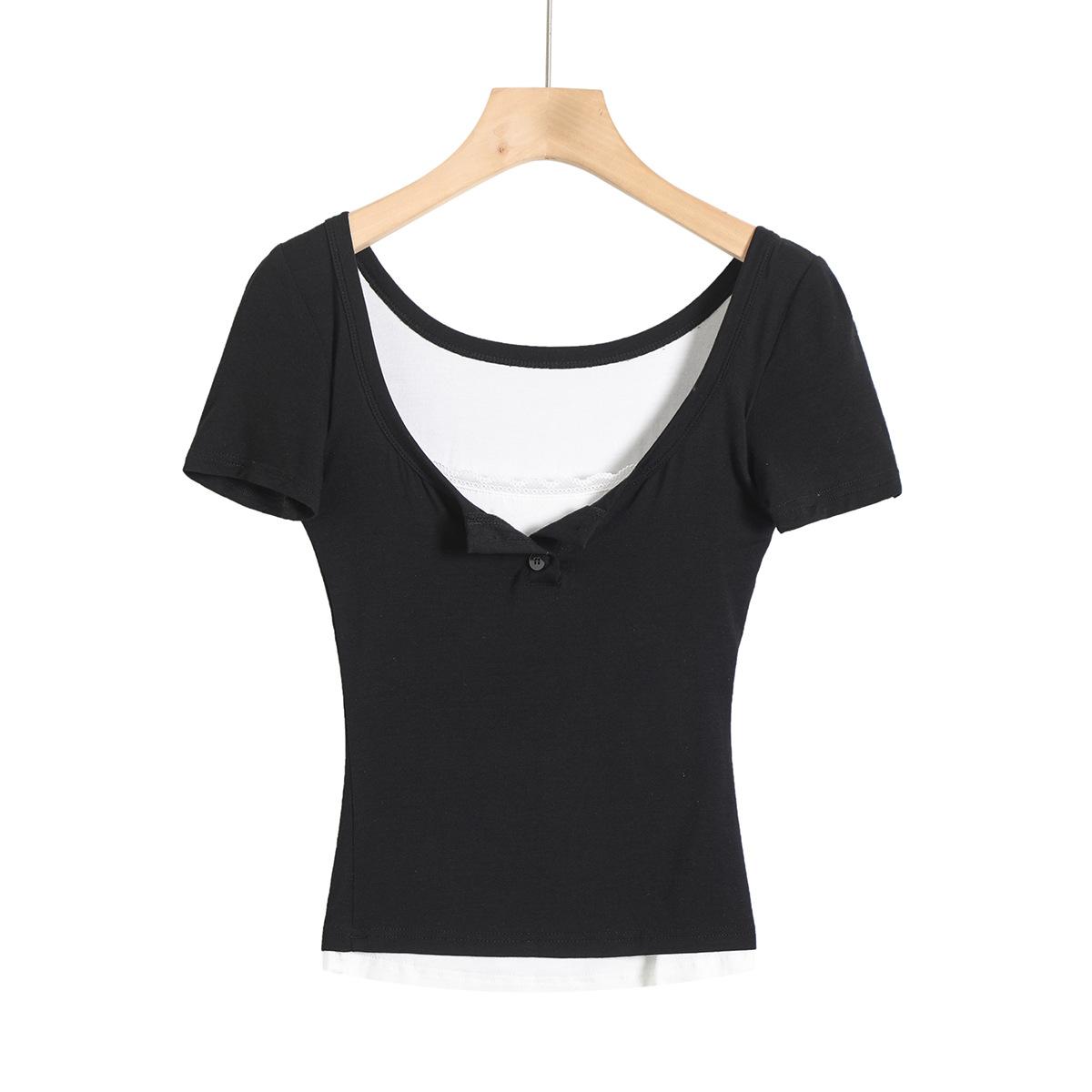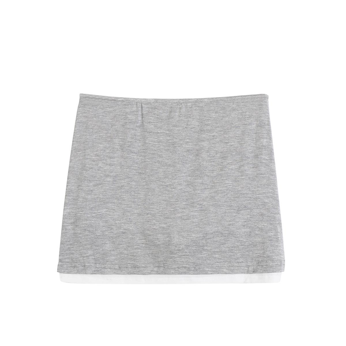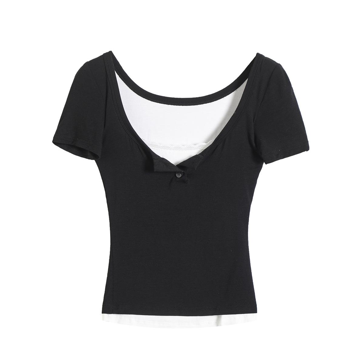 Conjunto de dos piezas formado por camiseta de manga corta y escote en V, estilo chica sexy, falda básica de corte A y longitud hasta la mitad.