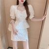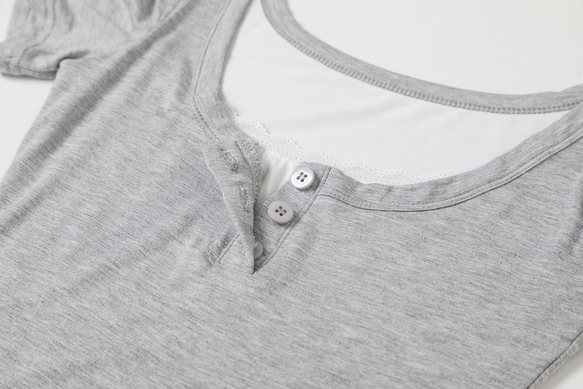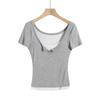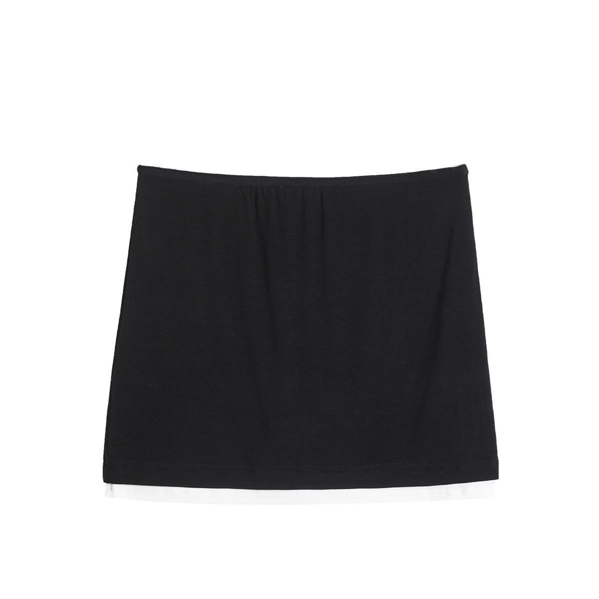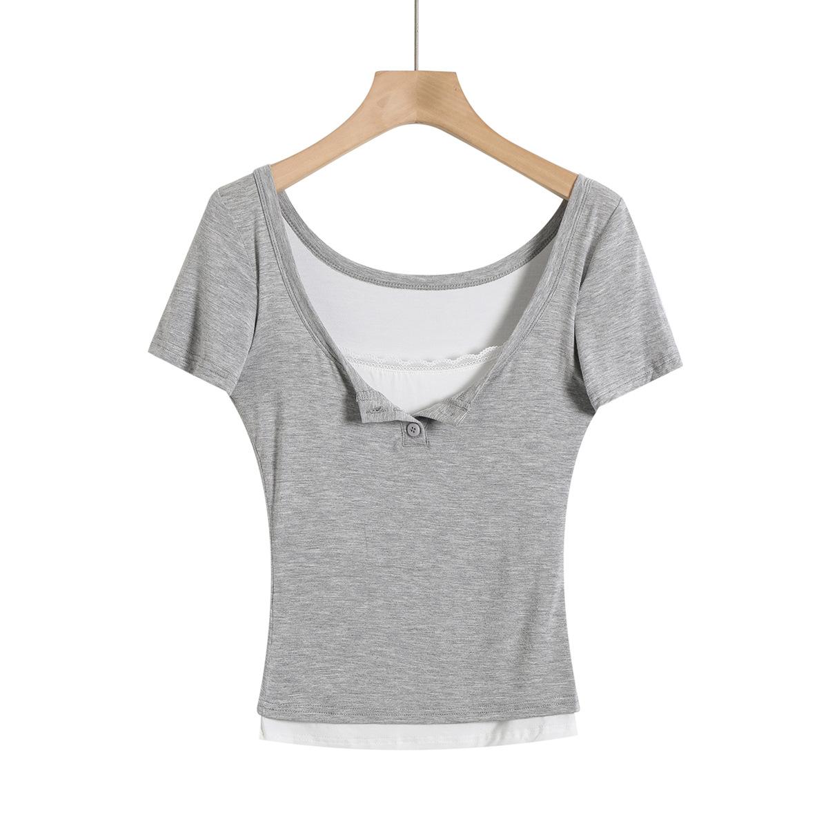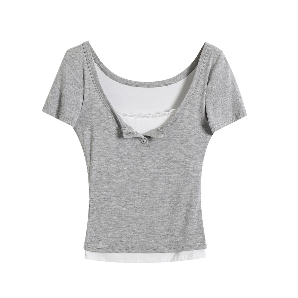 Conjunto de dos piezas formado por camiseta de manga corta y escote en V, estilo chica sexy, falda básica de corte A y longitud hasta la mitad.