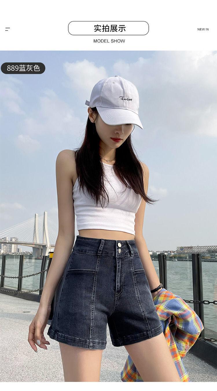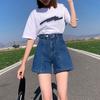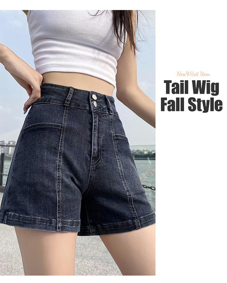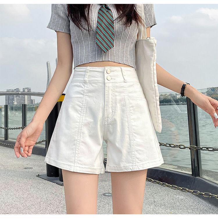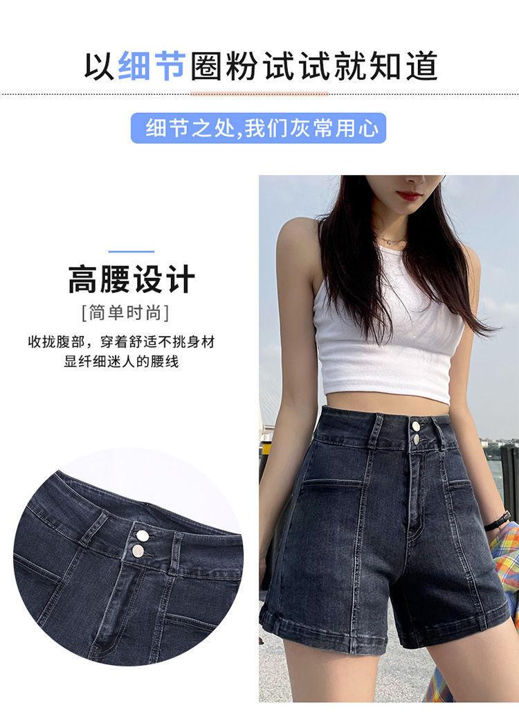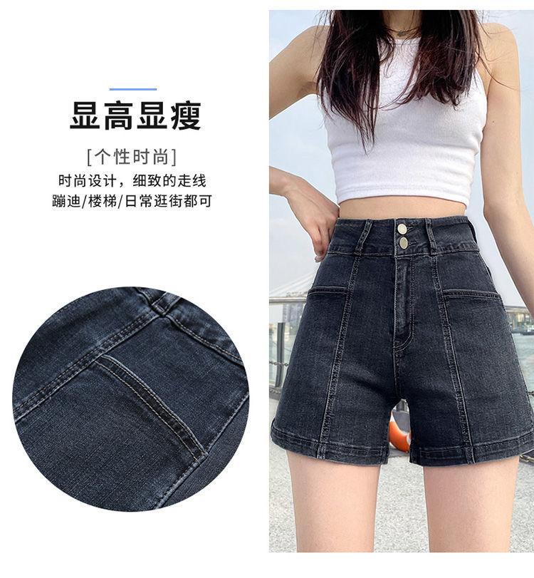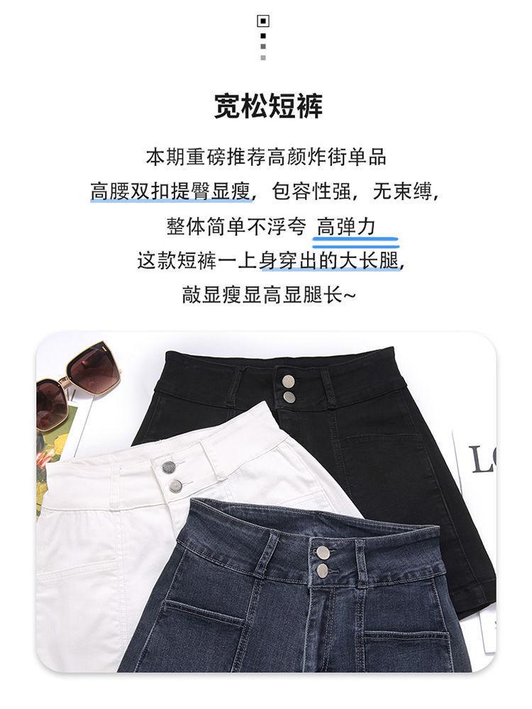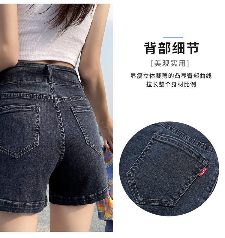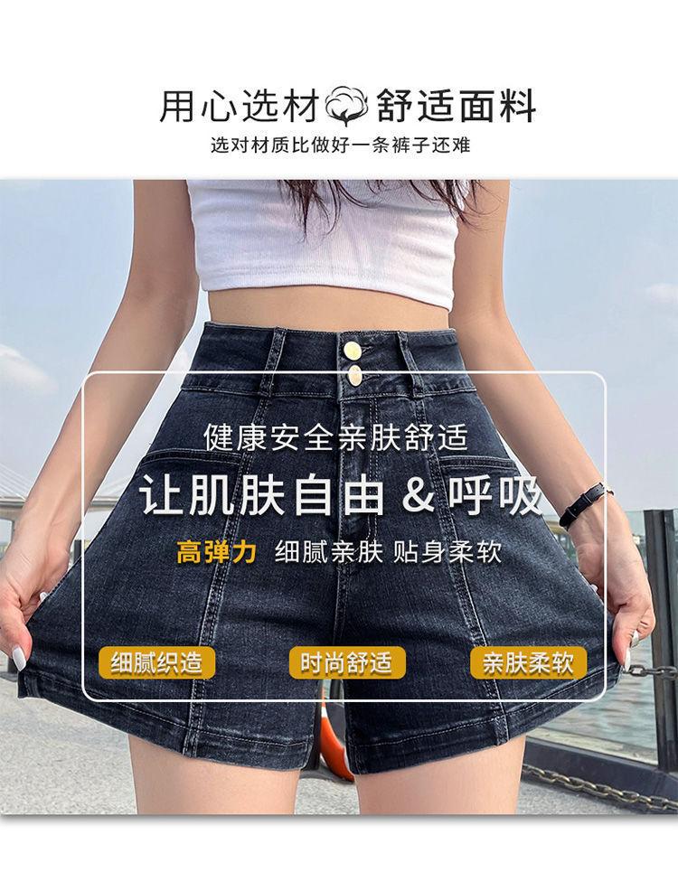 Pantalones cortos vaqueros elásticos de cintura alta para mujer, de verano, nuevos, adelgazantes, para chicas gorditas de talla grande, 100,00 kg, pantalones holgados de pierna ancha, pantalones en forma de A