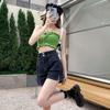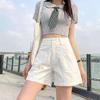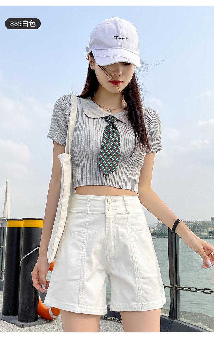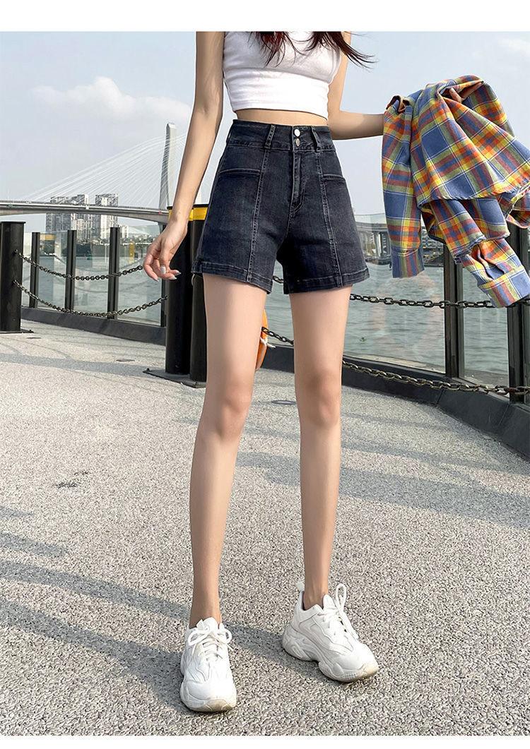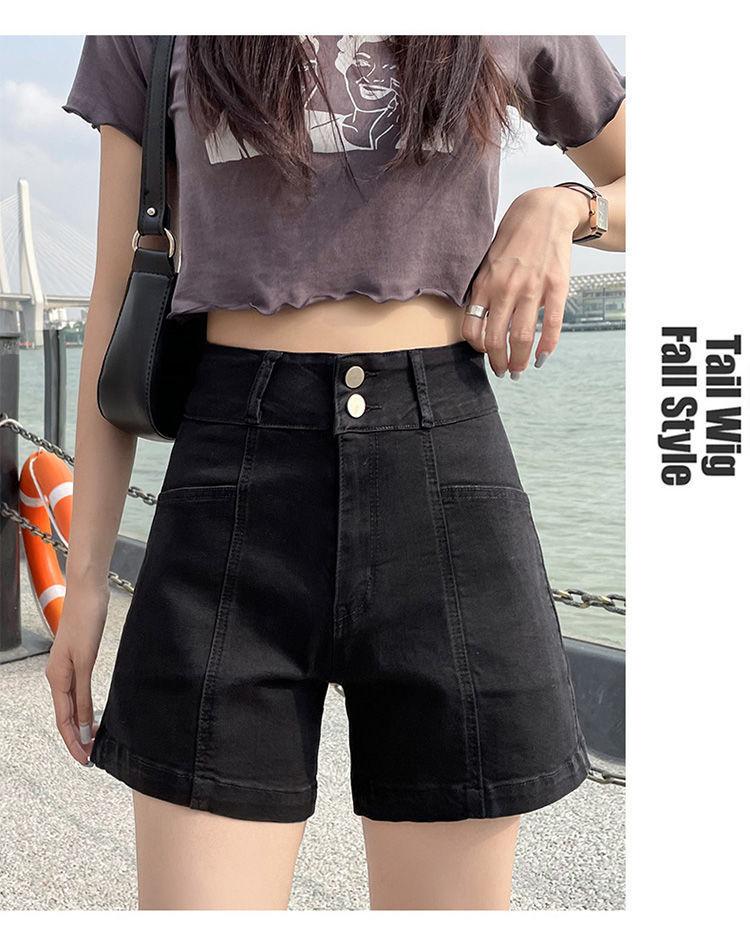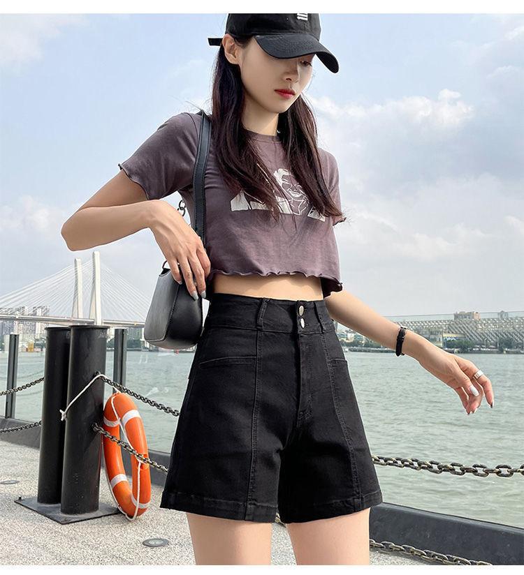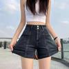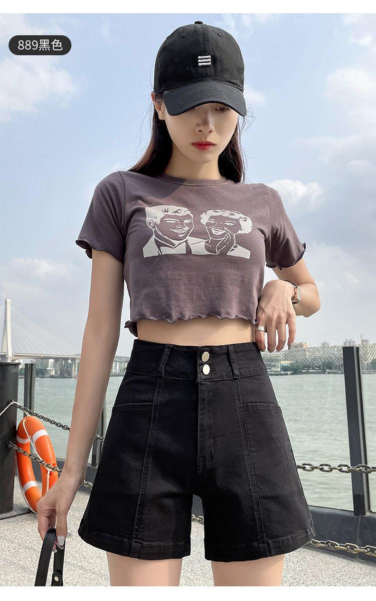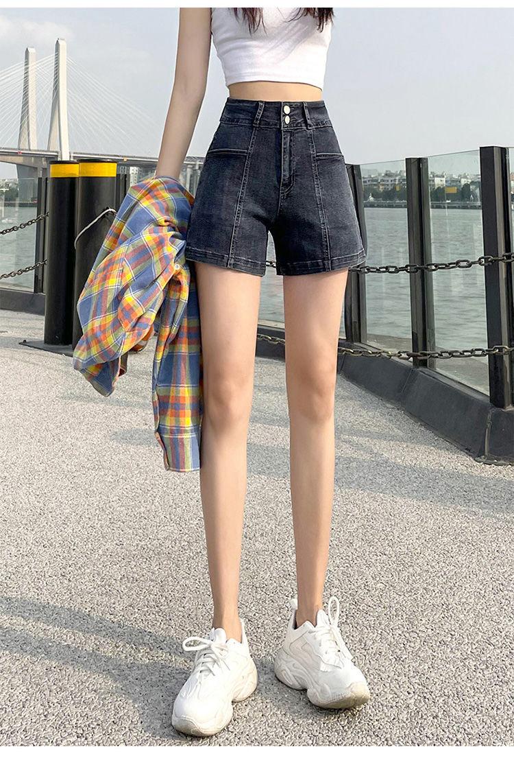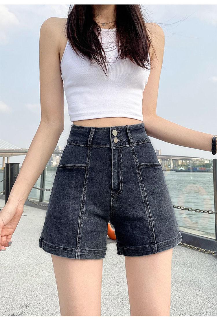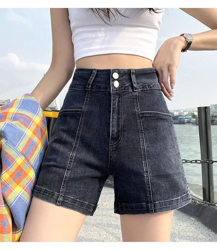 Pantalones cortos vaqueros elásticos de cintura alta para mujer, de verano, nuevos, adelgazantes, para chicas gorditas de talla grande, 100,00 kg, pantalones holgados de pierna ancha, pantalones en forma de A