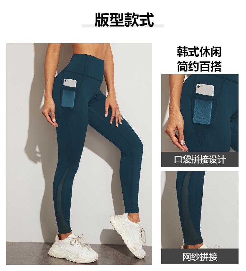 Pantalones de yoga transfronterizos, pantalones de Amazon, pantalones de fitness para correr de comercio exterior, leggings deportivos con bolsillo lateral para teléfono móvil de Europa y América.