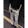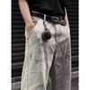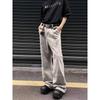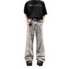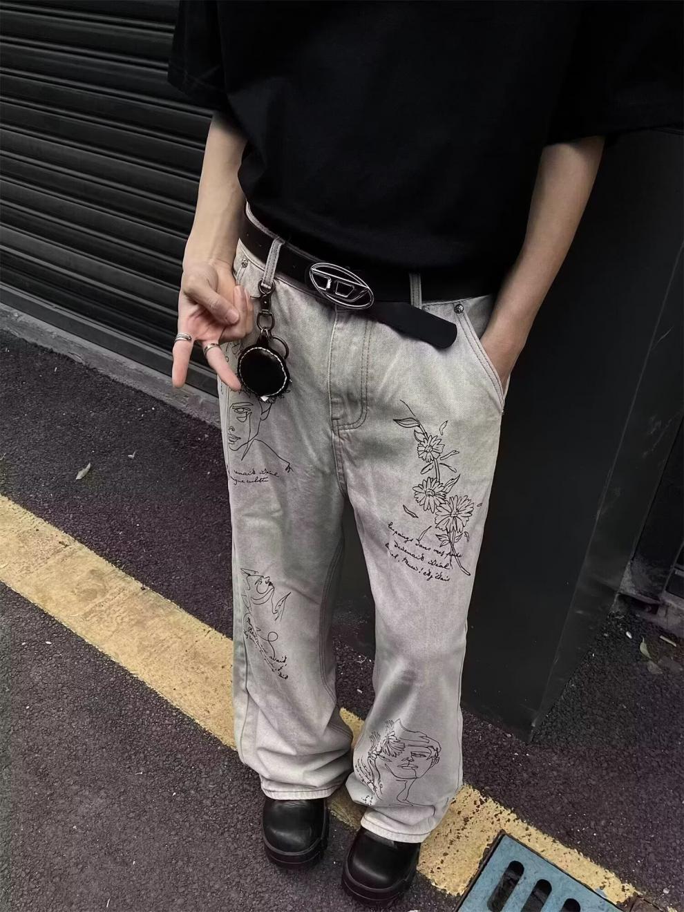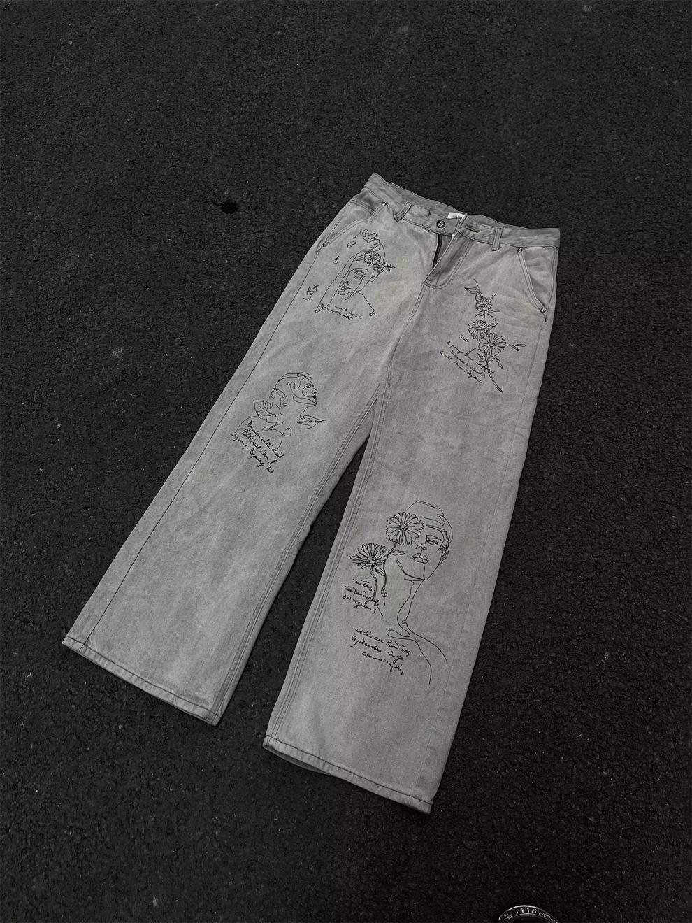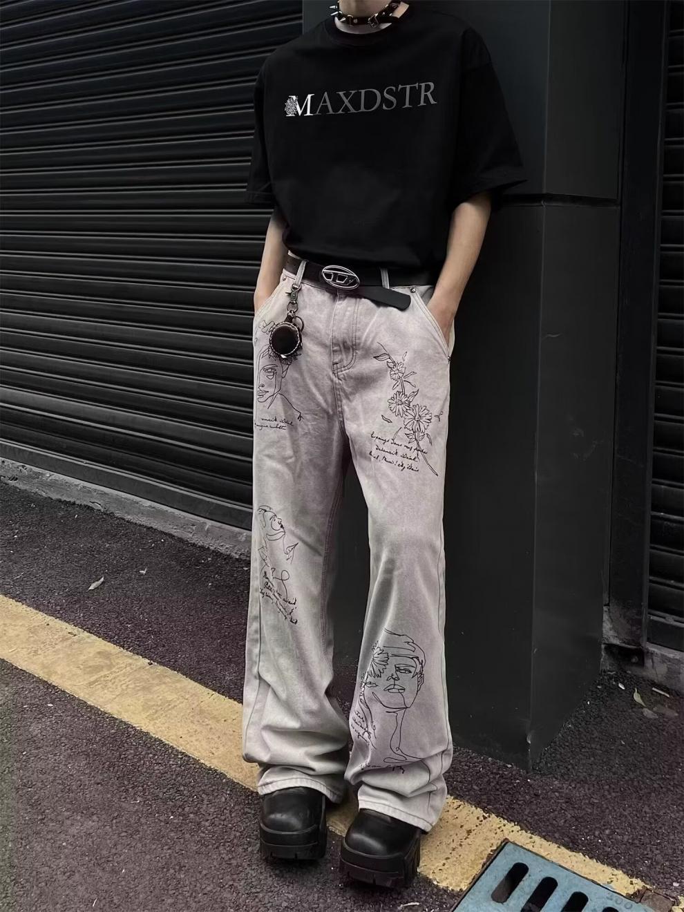 Pantalones vaqueros grises estilo americano de calle alta con estampado de grafiti de dibujos animados a la moda, pantalones anchos de pierna recta de gran tamaño