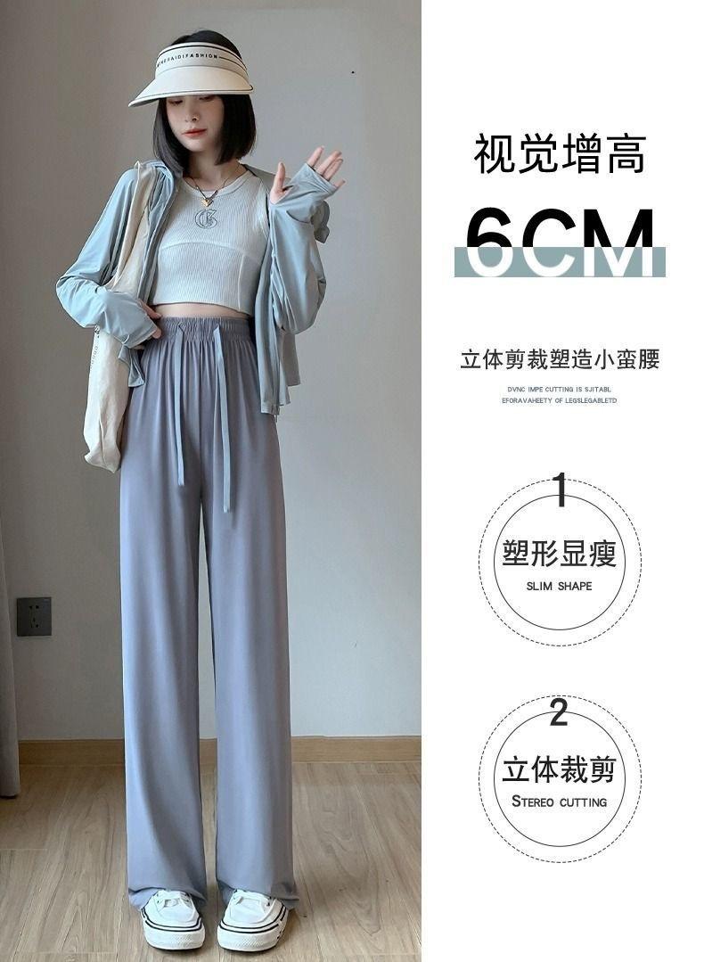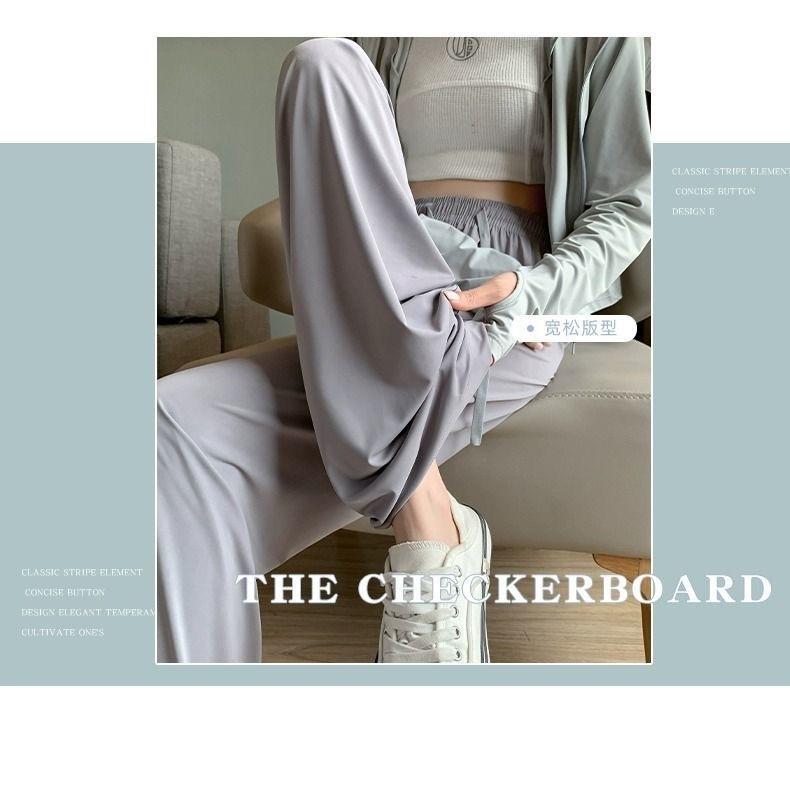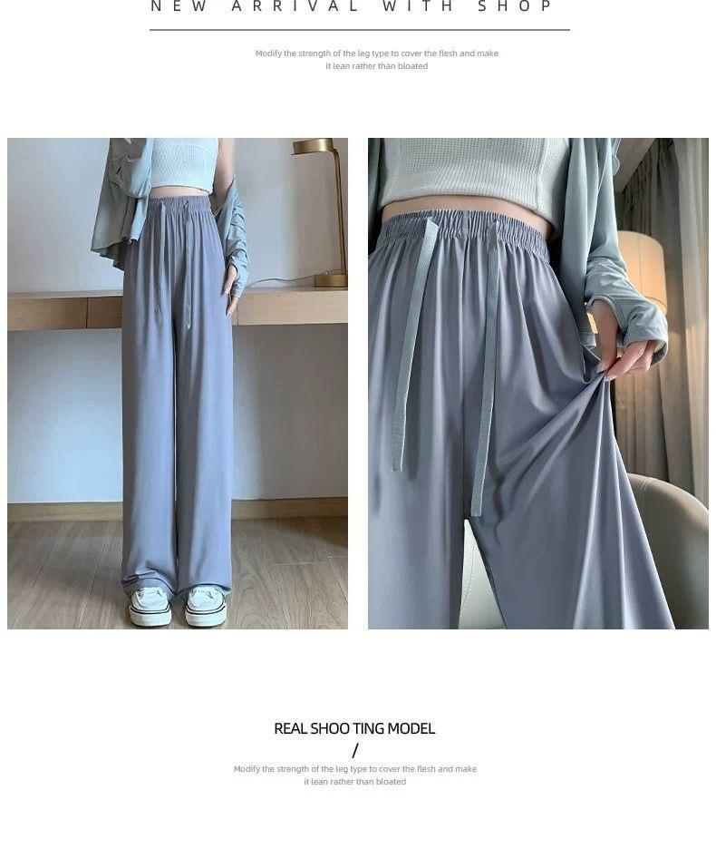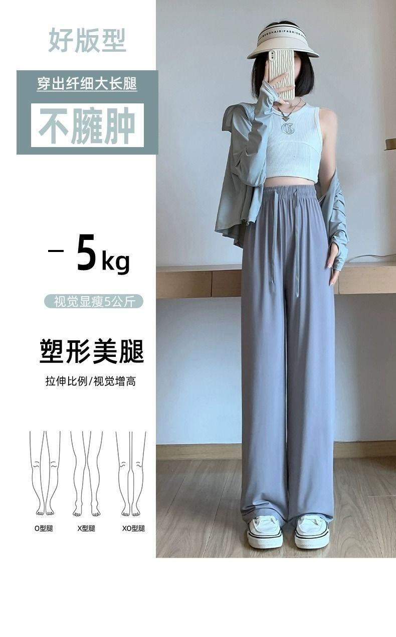 Pantalones anchos de seda de hielo de secado rápido con protección solar, de talla grande 300 kg, para mujer, de verano, finos, de cintura alta, sueltos, rectos y casuales.