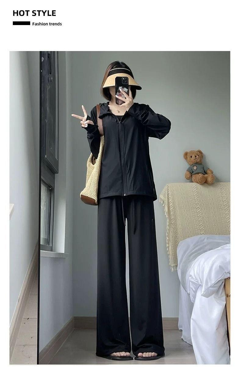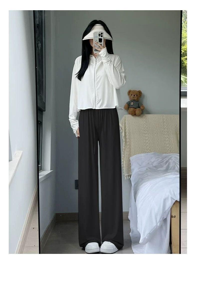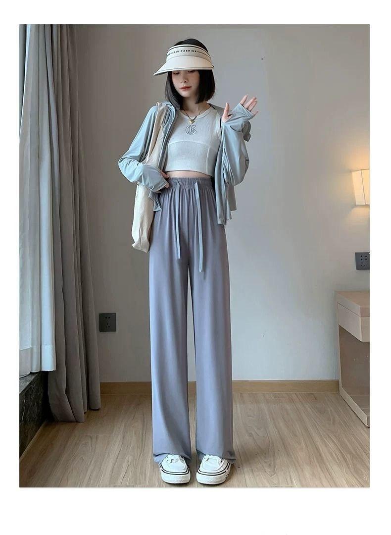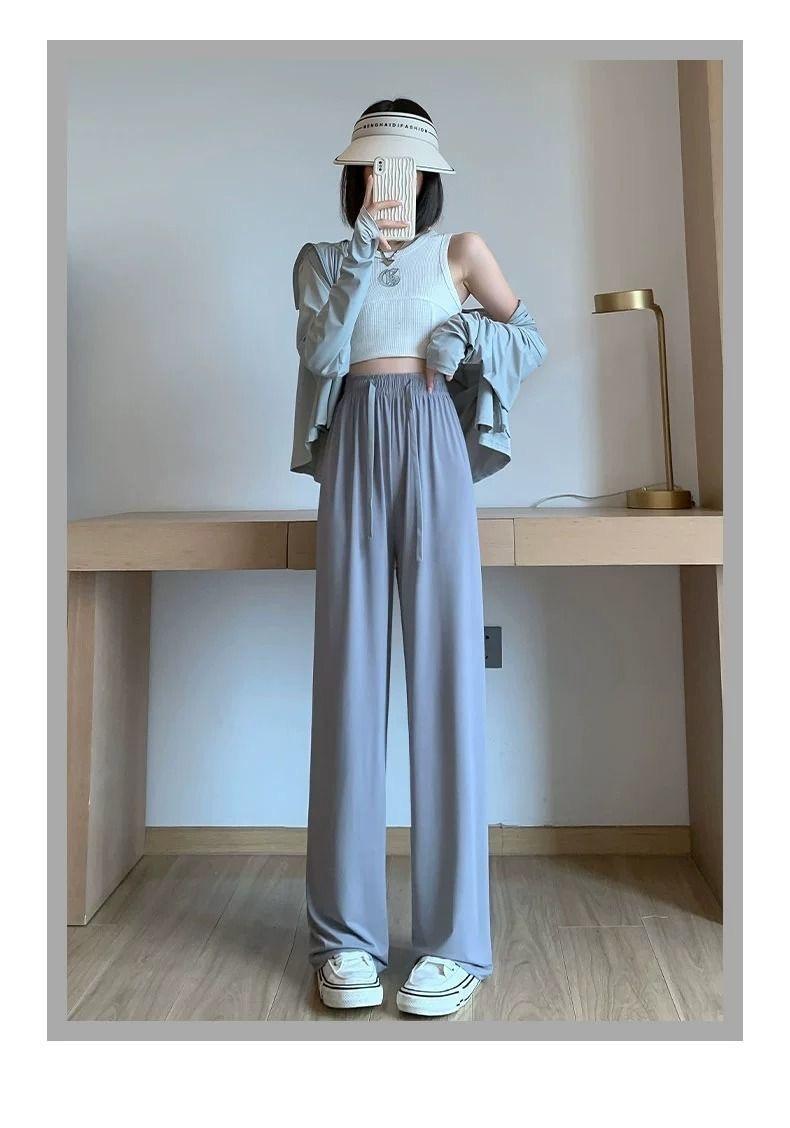 Pantalones anchos de seda de hielo de secado rápido con protección solar, de talla grande 300 kg, para mujer, de verano, finos, de cintura alta, sueltos, rectos y casuales.