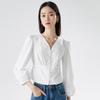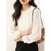 Camisa blanca de gasa de manga larga de primavera para mujer, nueva, con diseño de mujer, antiarrugas, mangas abullonadas para desplazamientos diarios.