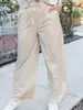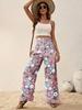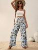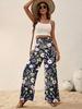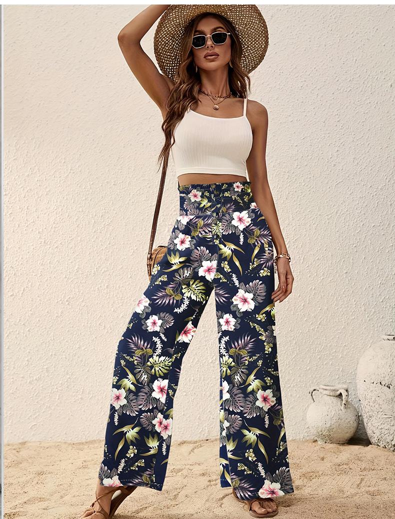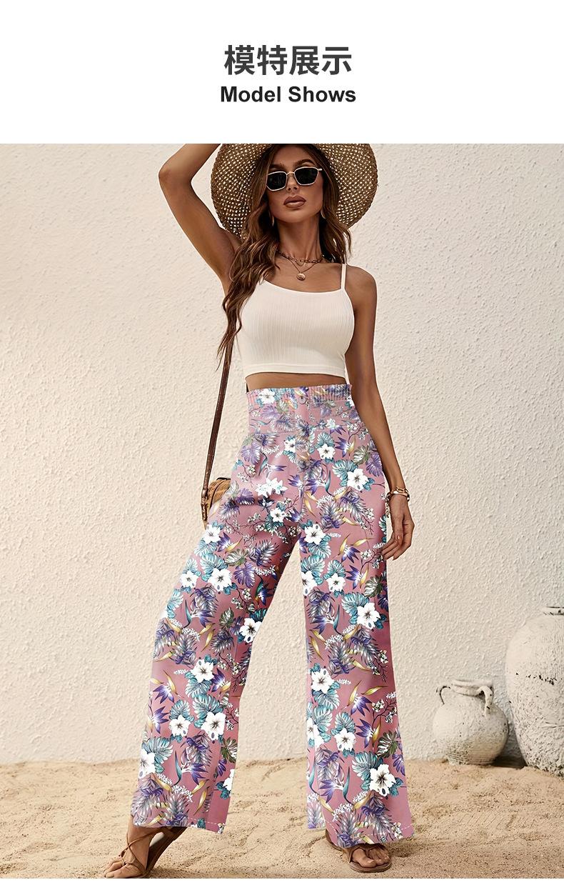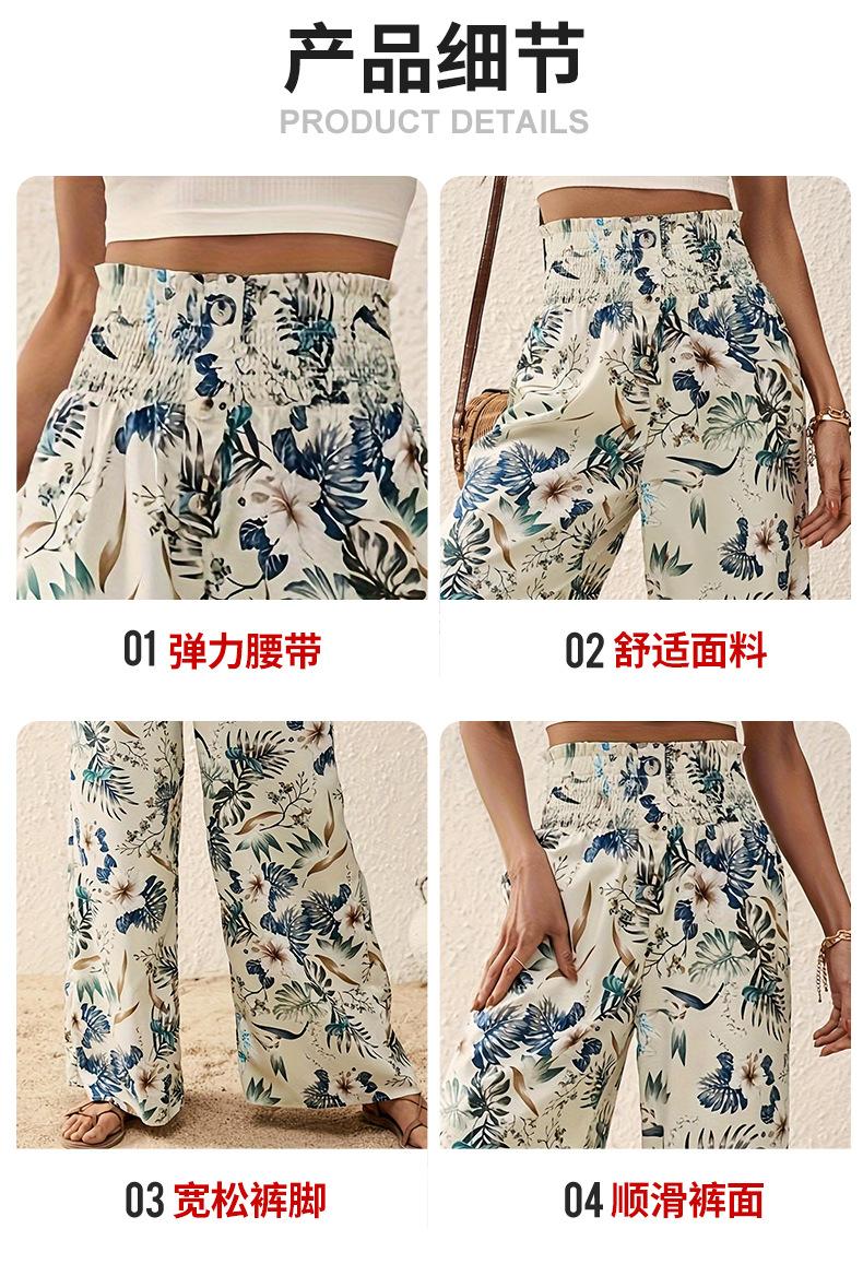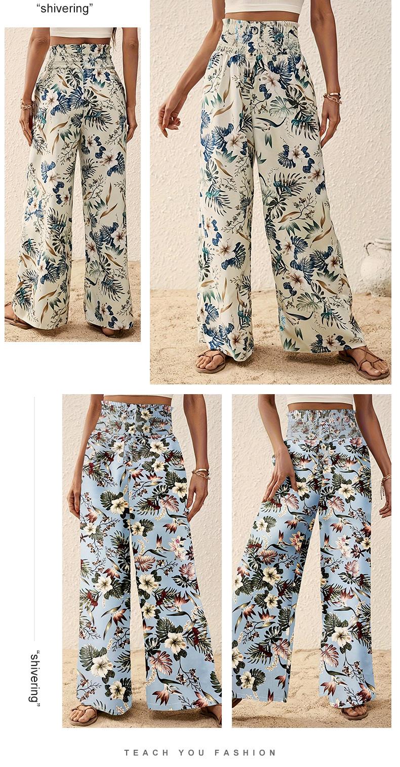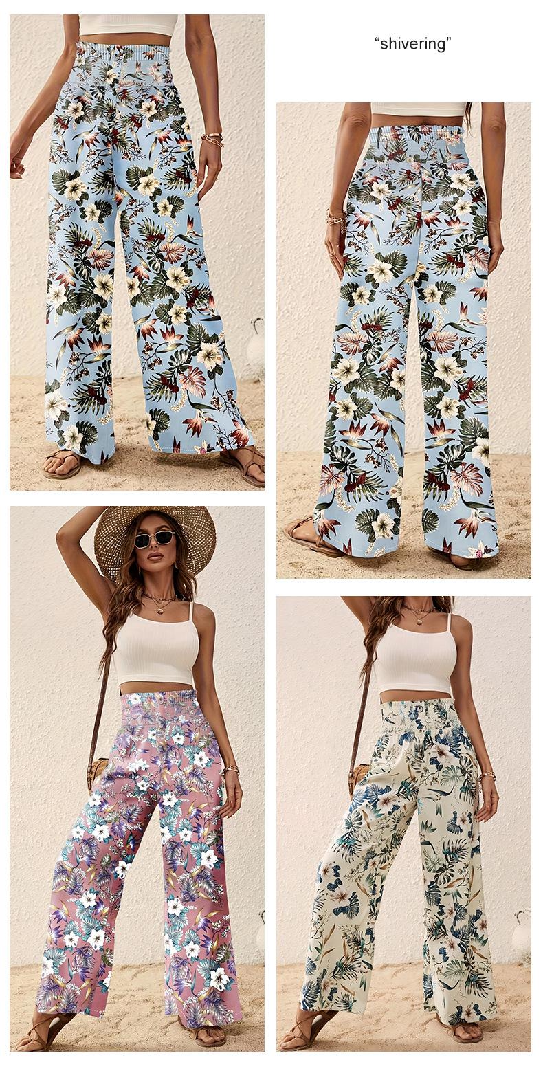 Ropa de Mujer Europea y Americana de Primavera Transfronteriza Nueva Moda Pantalones Largos Estampado Casual Temperamento Cintura Alta Fruncido Pierna Recta Pantalones de Pierna Ancha