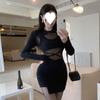 Vestido de manga larga con cintura ajustada, elegante y sensual, con falda adelgazante y diseño de costuras.