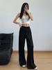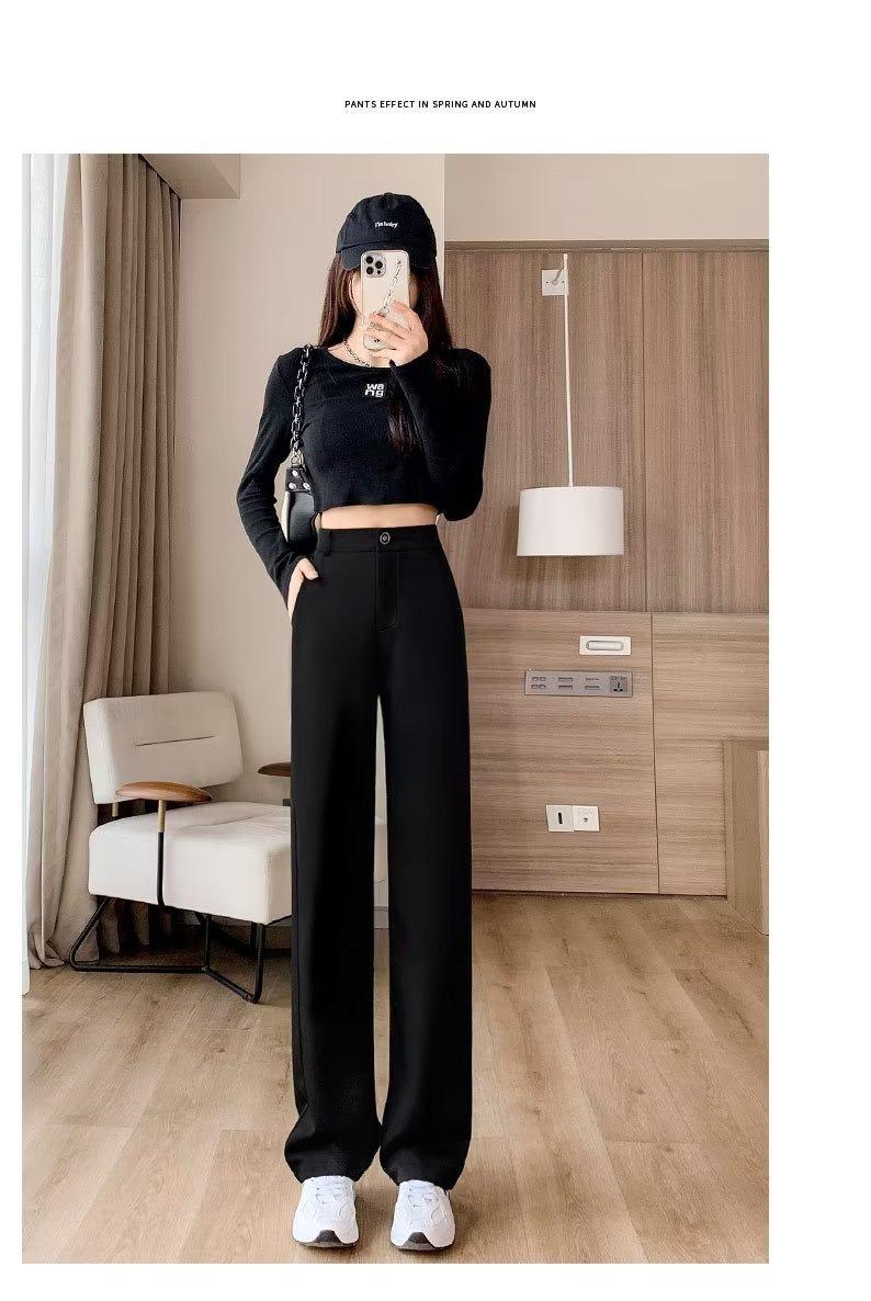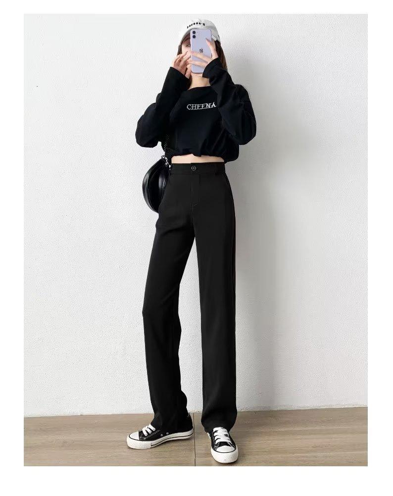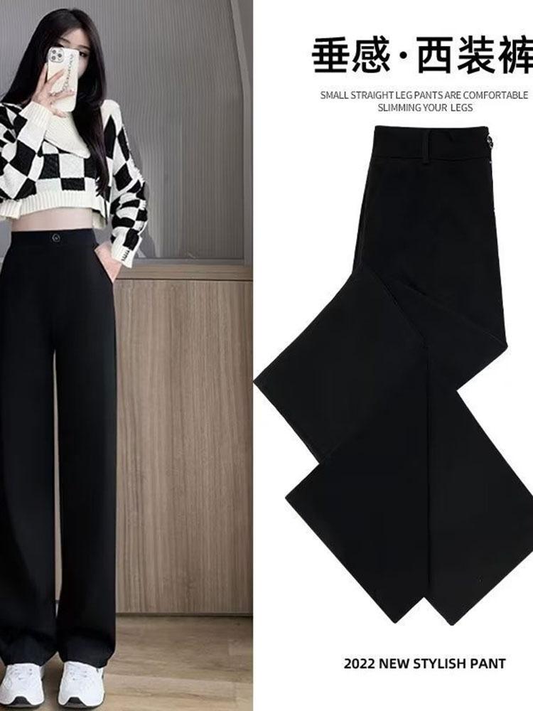 Pantalones de traje de cintura alta para mujer, de verano, de alta gama, ajustados, negros, informales, de pierna recta y ancha, 2024
