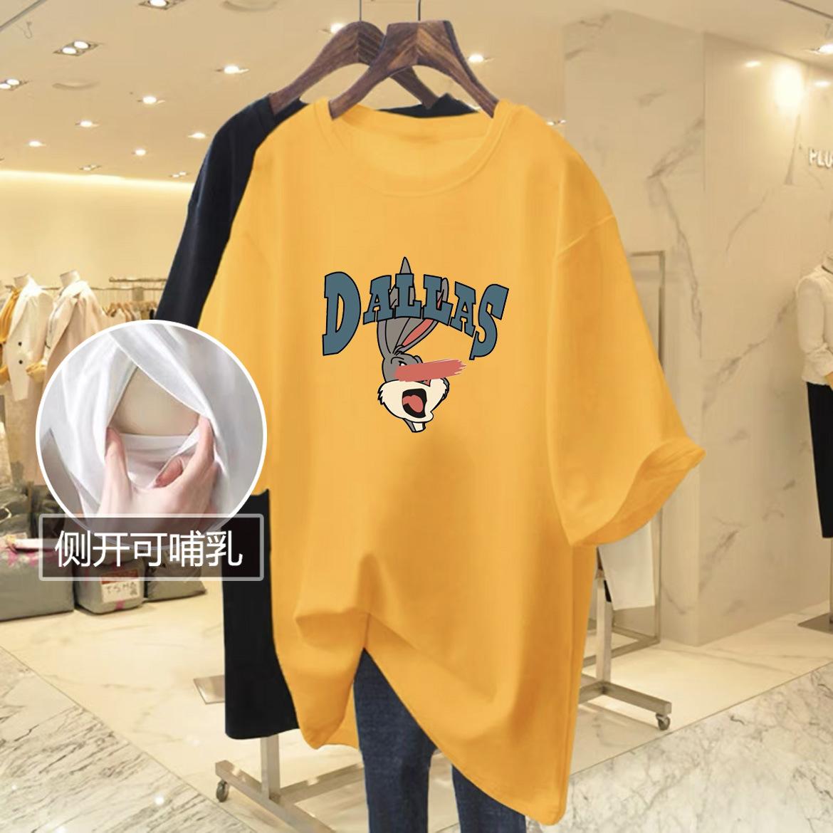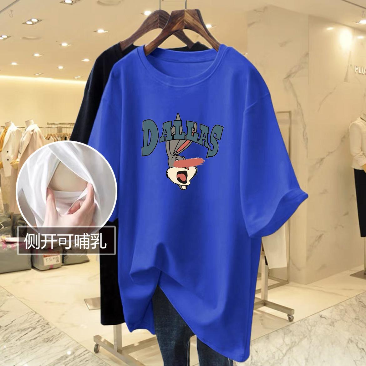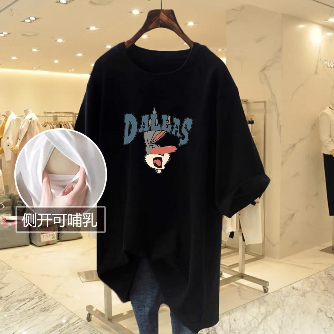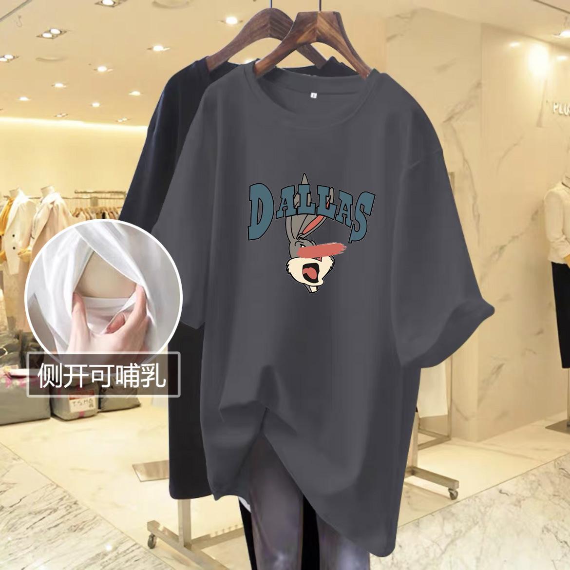 Ropa de lactancia de verano, camiseta de manga corta con abertura lateral, ropa de lactancia de moda, camiseta de talla grande para mujer.