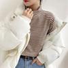 Camiseta Básica Catiónica de Color Sólido Otoño e Invierno Interior Cuello Medio Alto Estilo Coreano Terciopelo Cálido Top Camiseta Gruesa con Forro Polar para Mujer