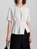 Camiseta blanca de manga corta estampada para mujer, novedad de verano 2024, camiseta sencilla con hombros descubiertos y diseño Sense Top