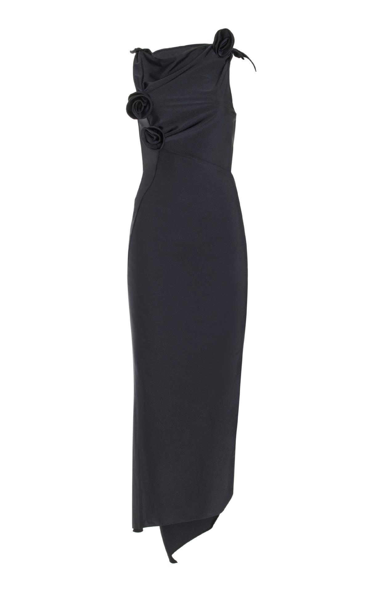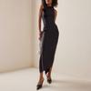 Vestido Transfronterizo Vestido Francés Slim Sin Mangas 2025 Nuevo Cuello Medio Abierto Diseño Recortado de Flores Falda Larga