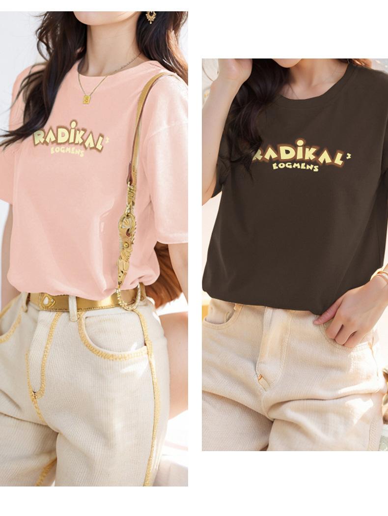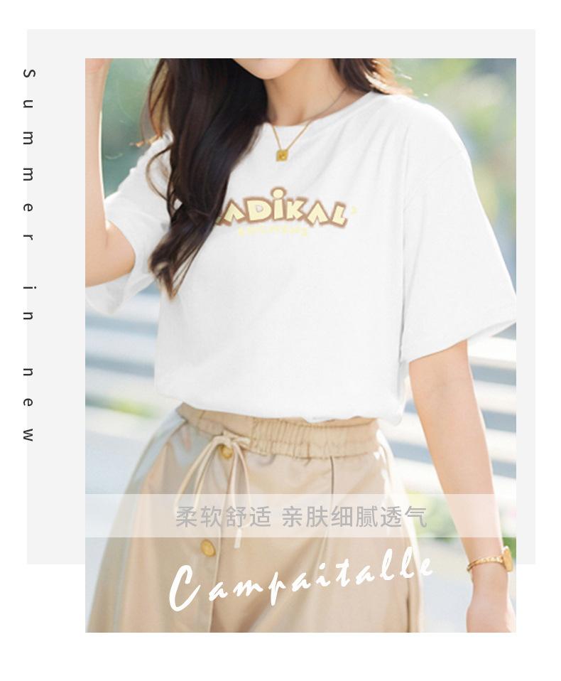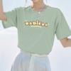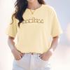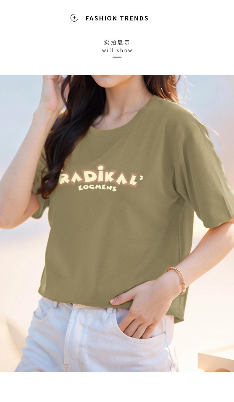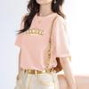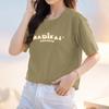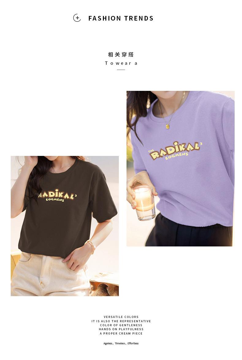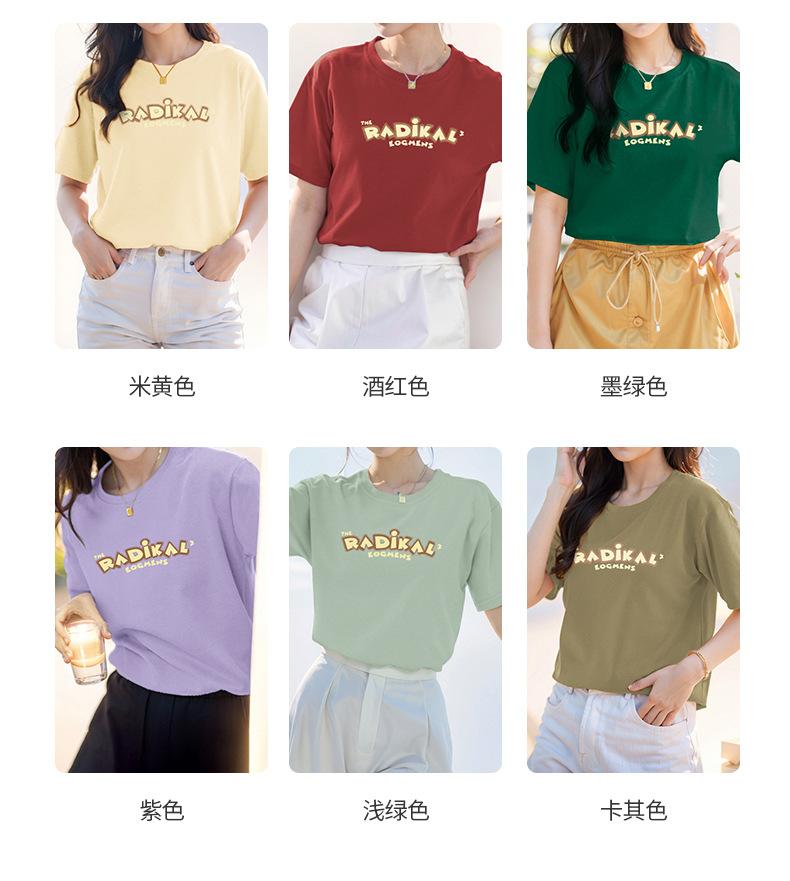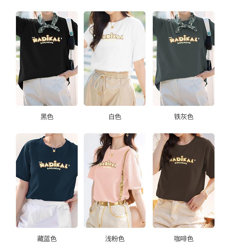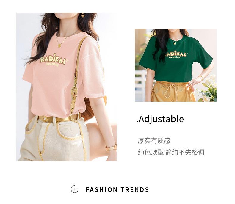 Camiseta de algodón grueso de 260 g para mujer, de manga corta, diseño veraniego, con estampado de nicho, cuello redondo y manga corta.