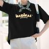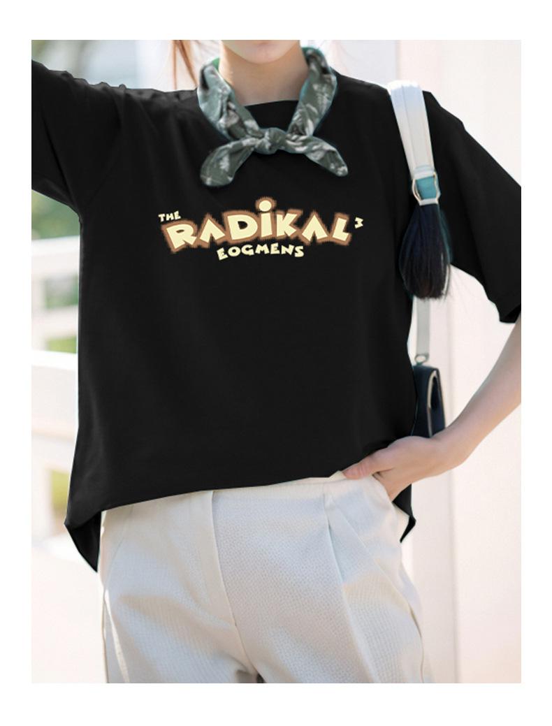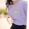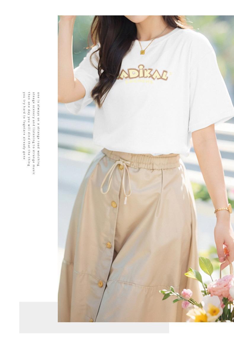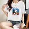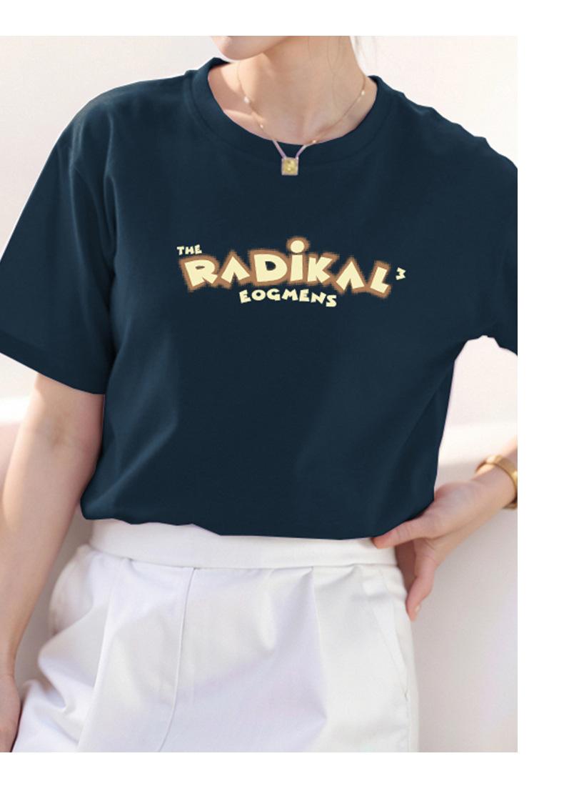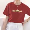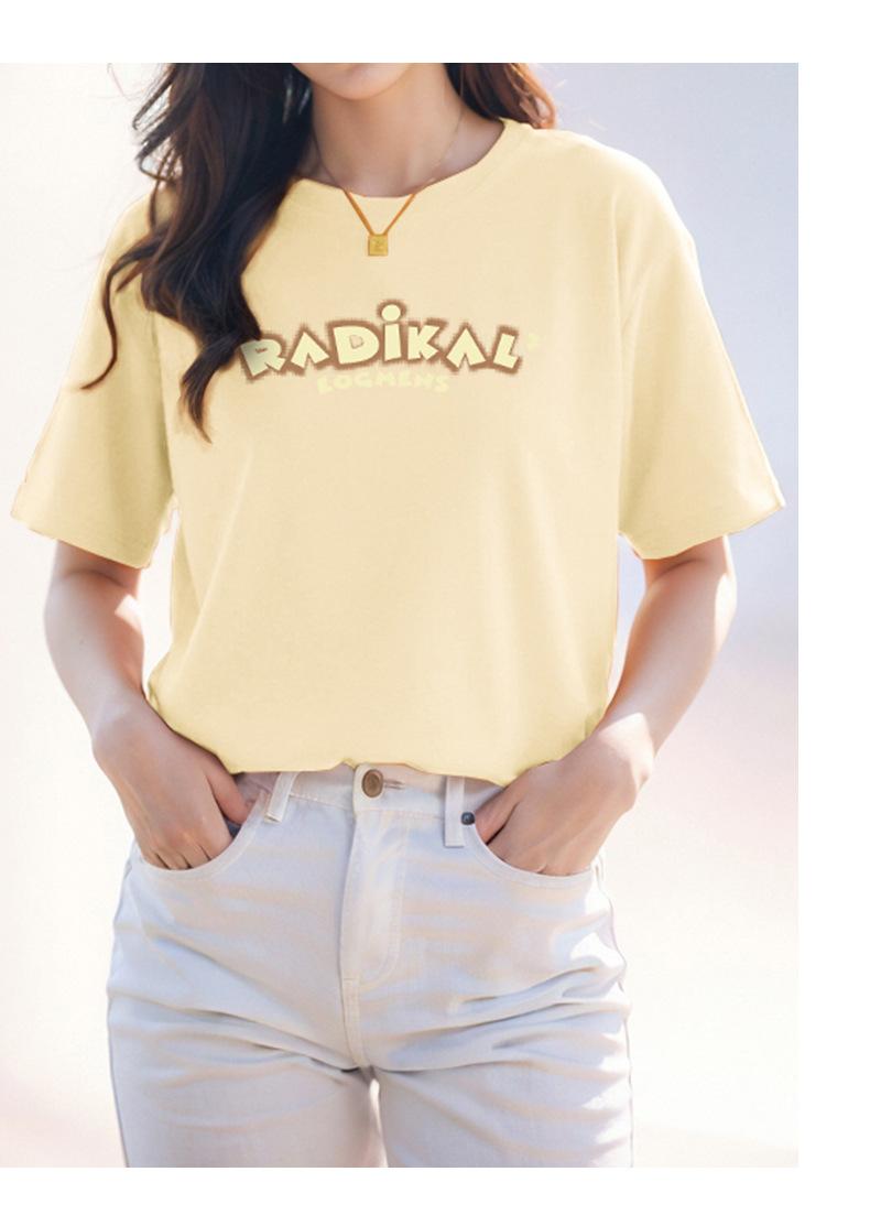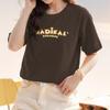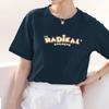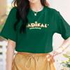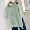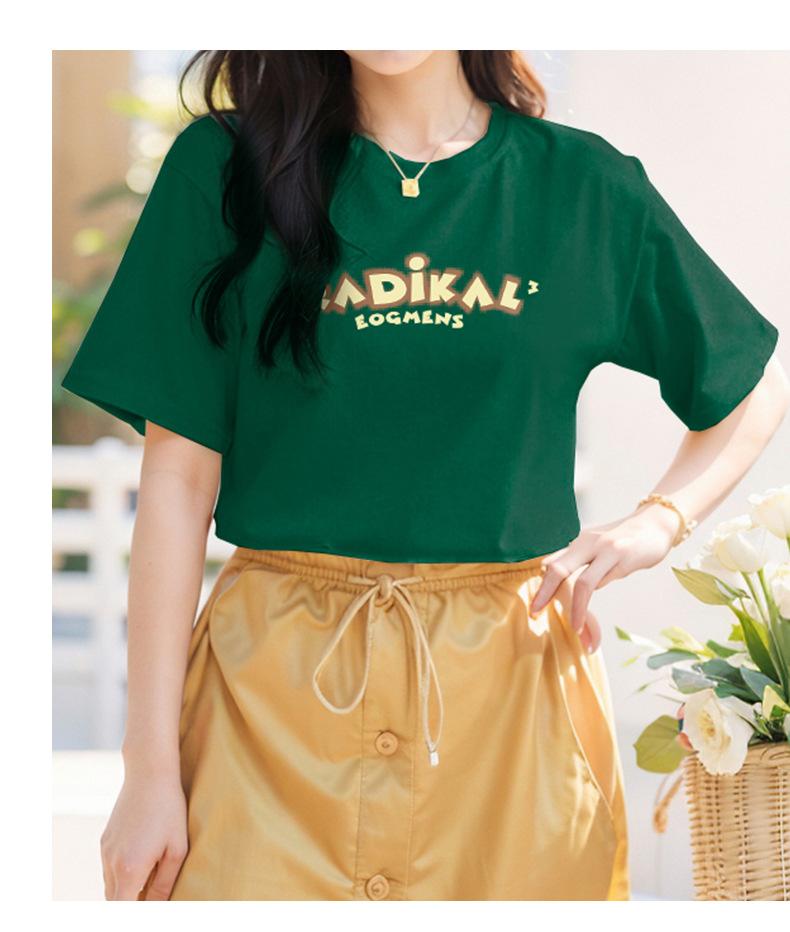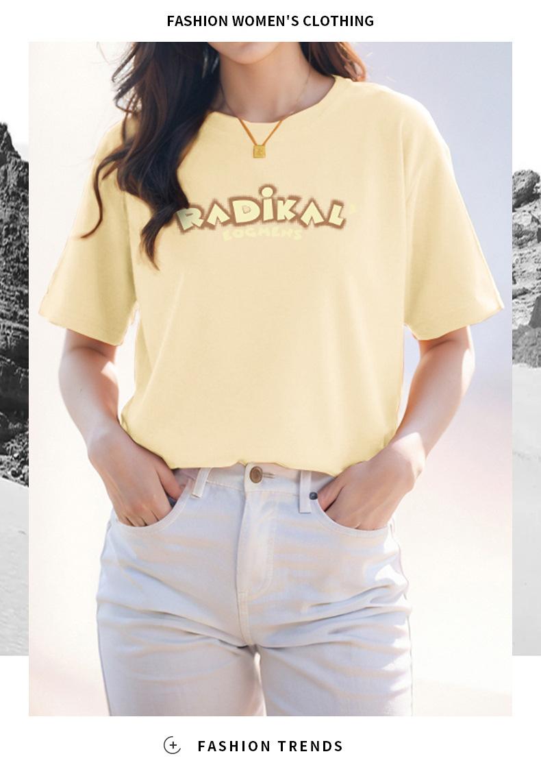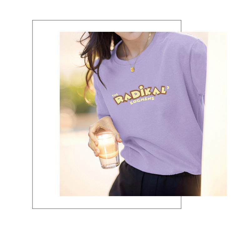 Camiseta de algodón grueso de 260 g para mujer, de manga corta, diseño veraniego, con estampado de nicho, cuello redondo y manga corta.