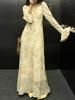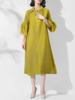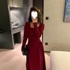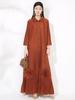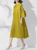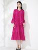 Vestido plisado de otoño nuevo, elegante, de alta gama, con solapa, suelto, adelgazante, con cuentas y flores, manga de trompeta, falda elástica con movimiento.