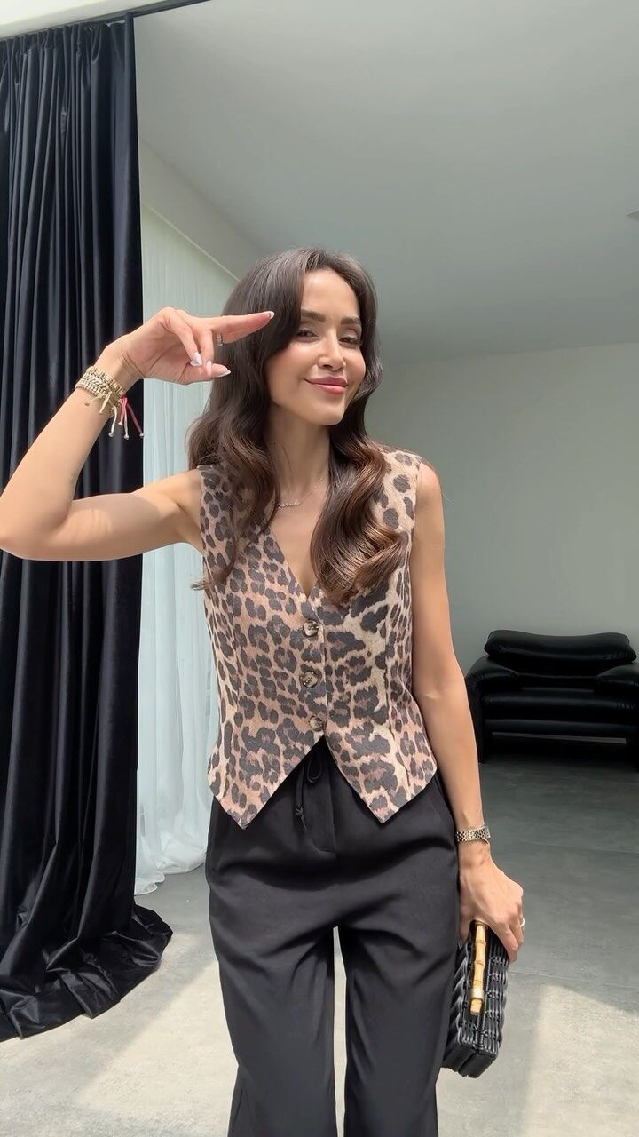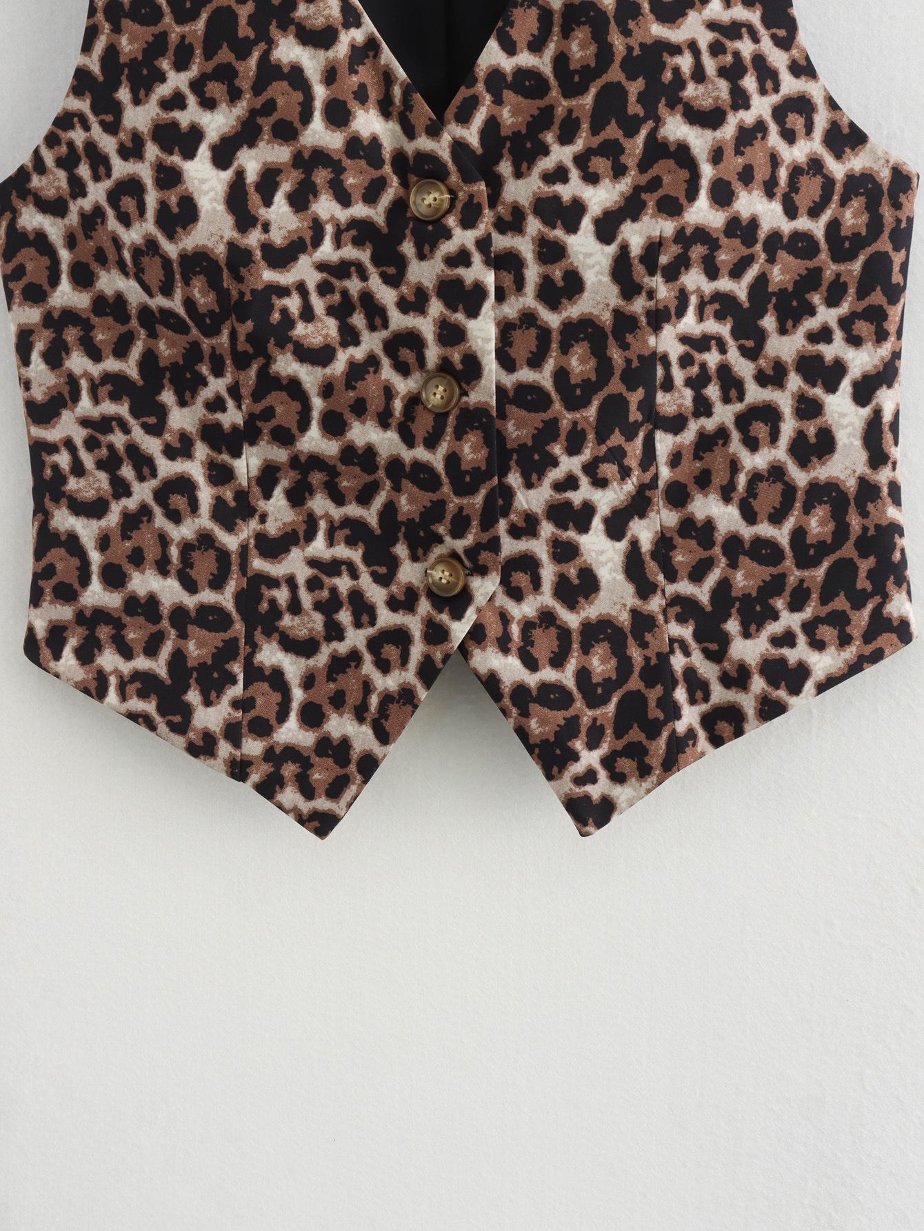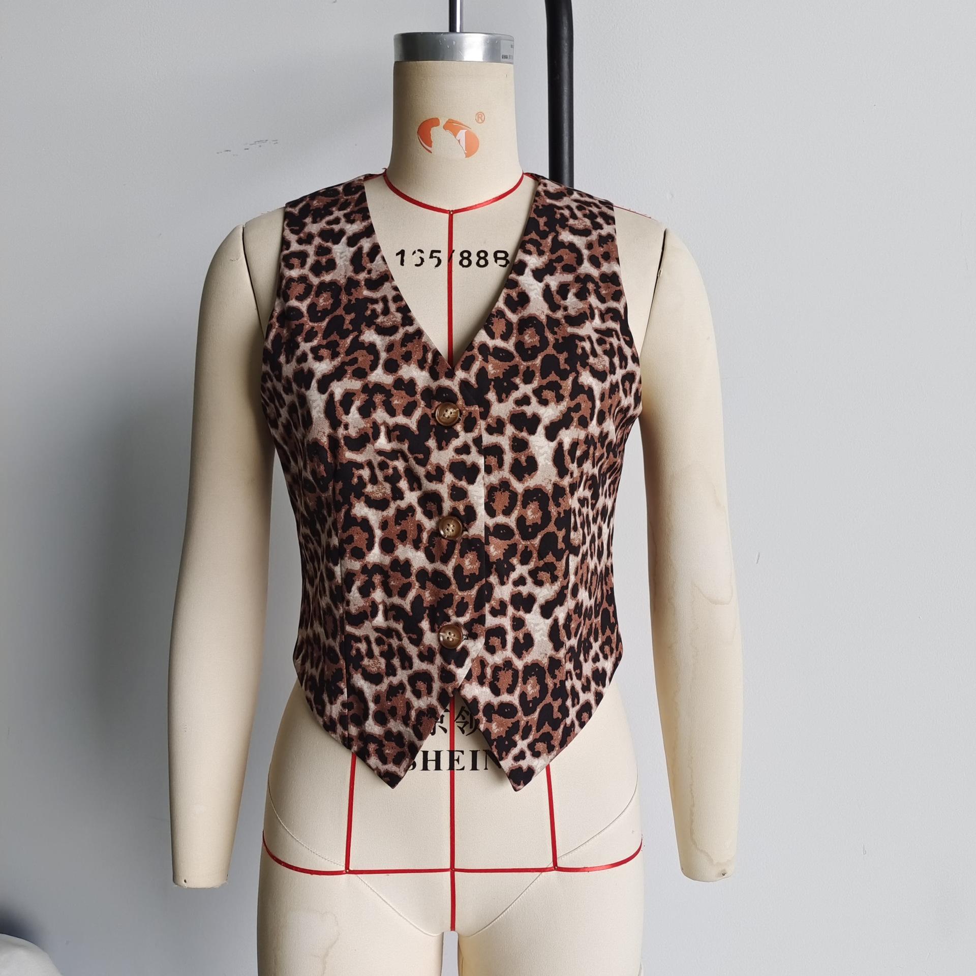 Chaleco de verano 2024 para mujer, estilo europeo y americano, con escote en V, botonadura sencilla, ajustado y estampado animal, A14052