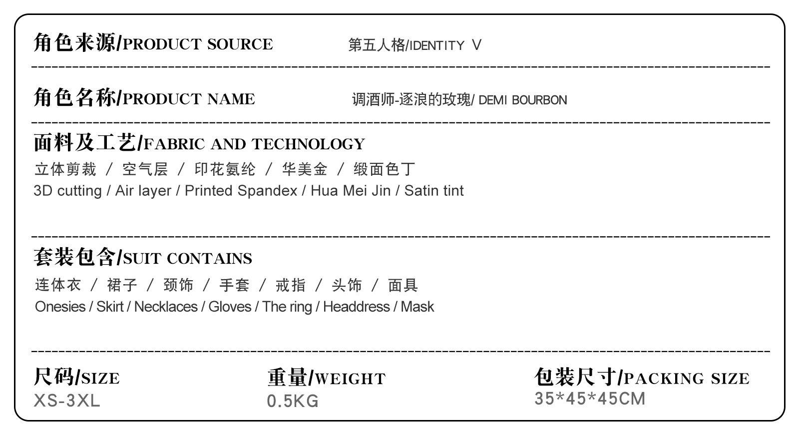 Traje Cos de la Quinta Personalidad Disfraz de Cosplay de Rosa de Bartender Animación Bidimensional