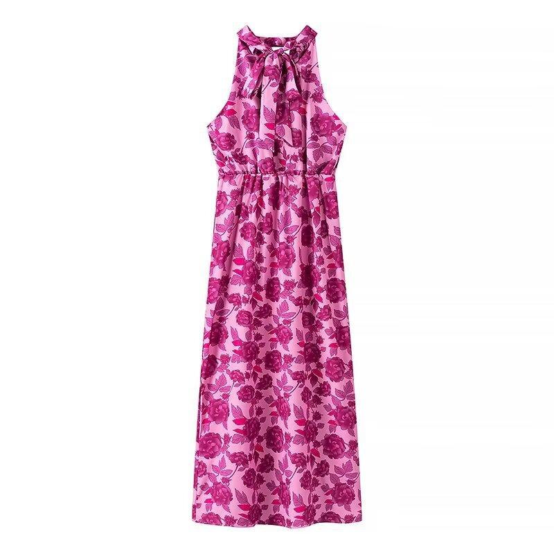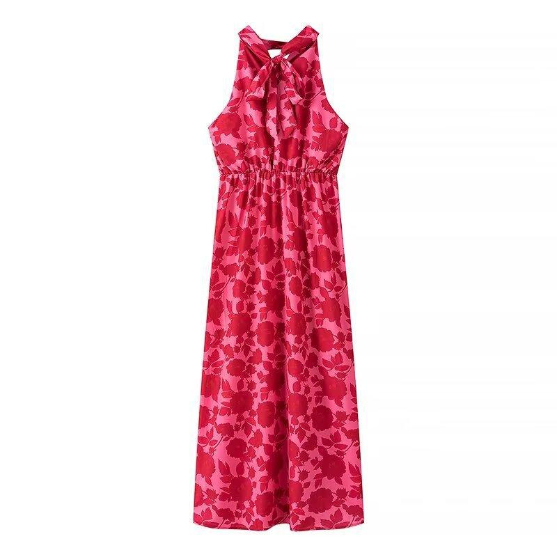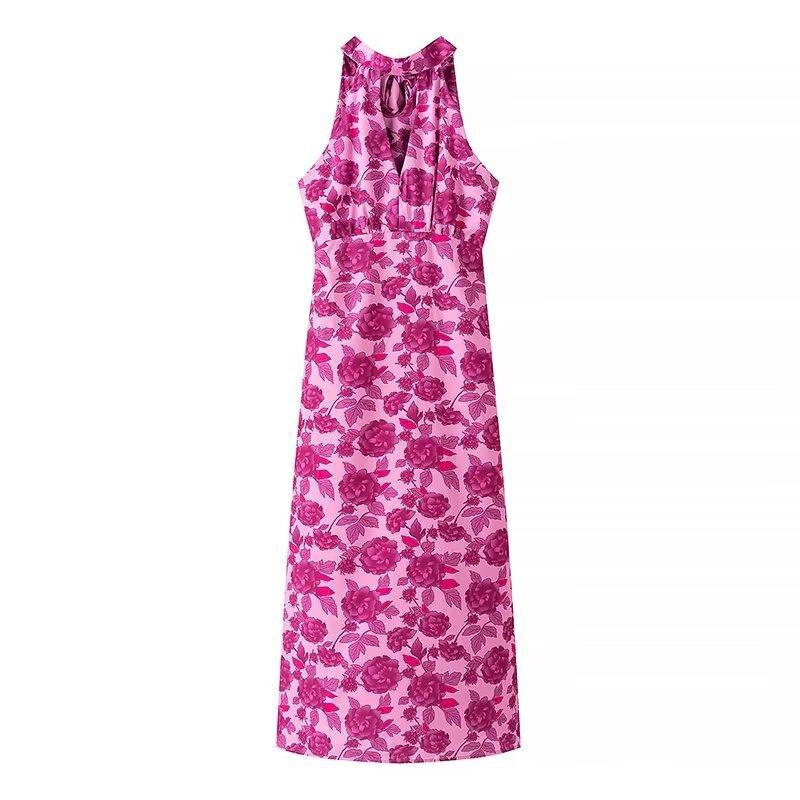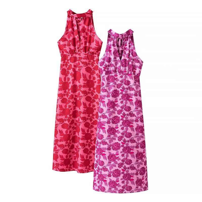 Vestido de verano 2024 con cuello colgante, estampado ligero y maduro, estilo transfronterizo europeo y americano, 2097