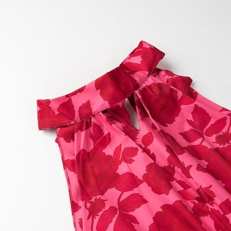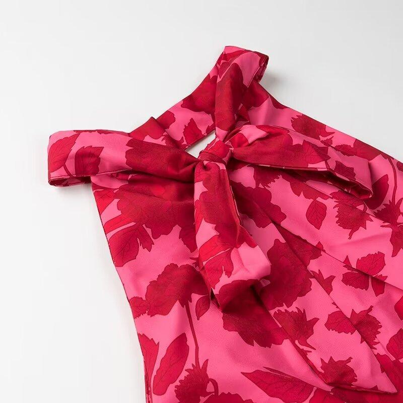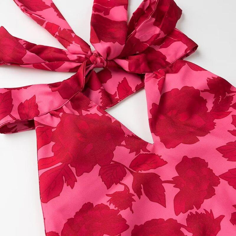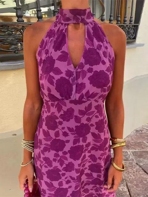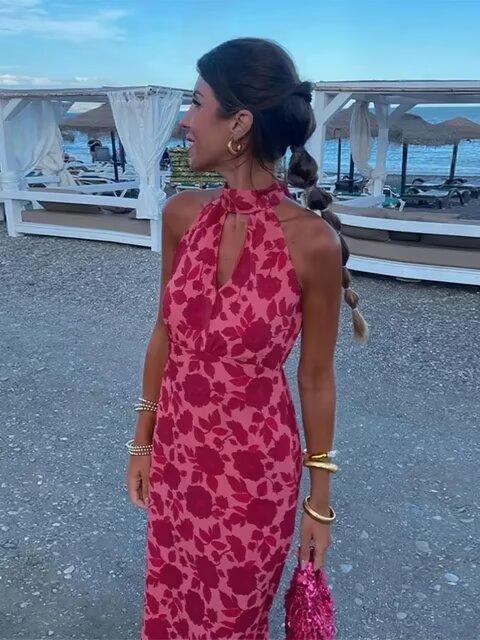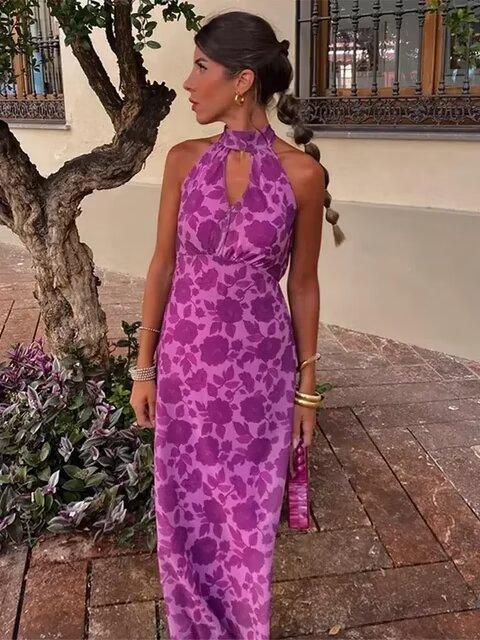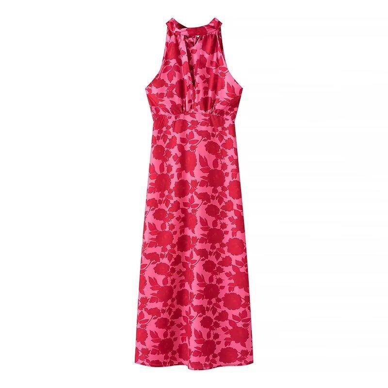 2024 Verano Nuevo Temperamento Europeo y Americano Transfronterizo Vestido de Cuello Halter Estampado Ligeramente Maduro para Mujer w091 2097