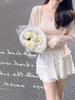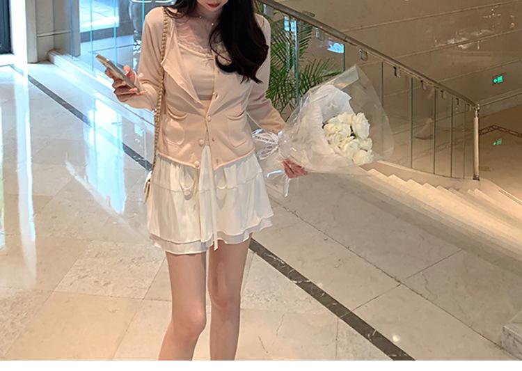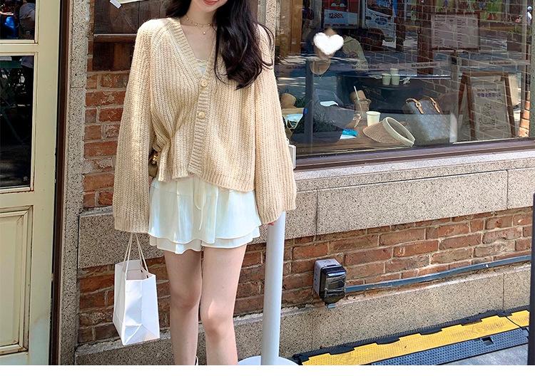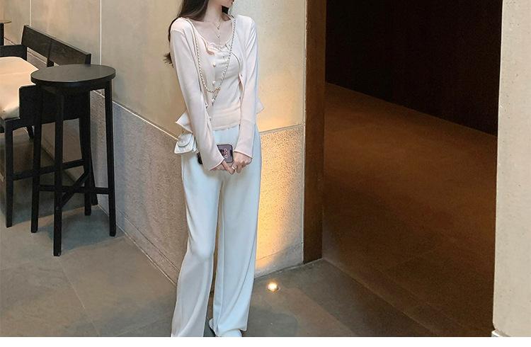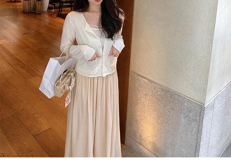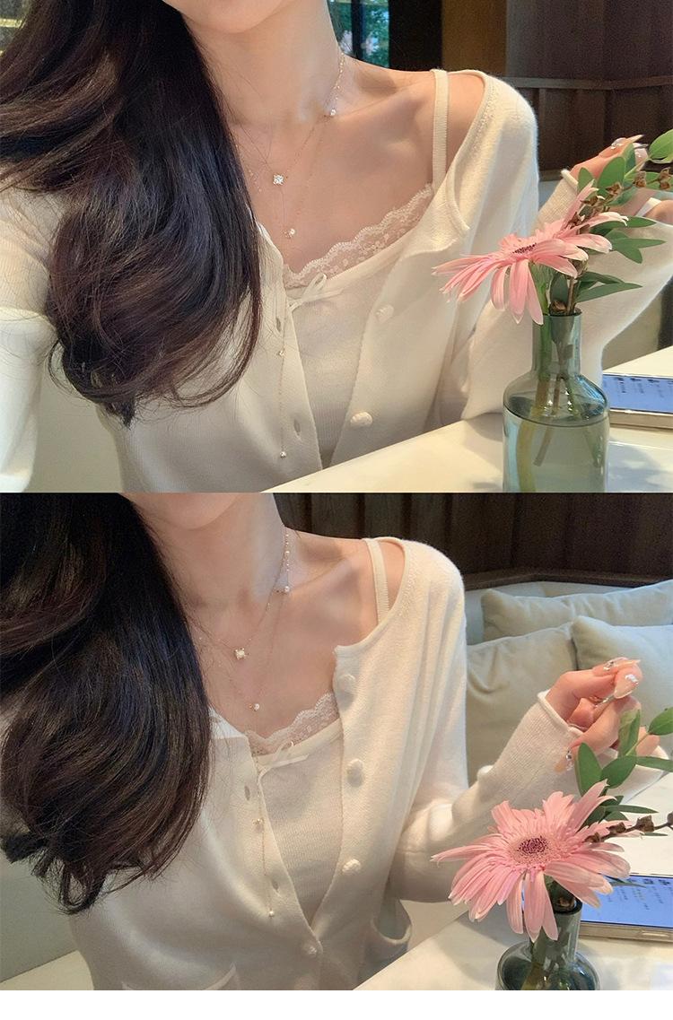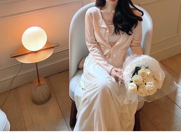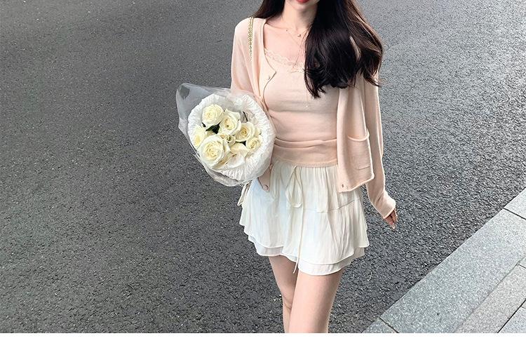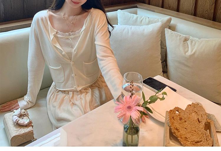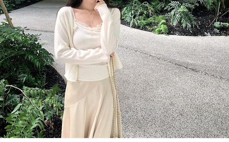 Cárdigan de Punto con Encaje de Corazón de Flor y Tirantes, Conjunto de Dos Piezas para Mujer, Otoño Nuevo Estilo