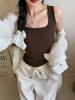 Chaleco interior blanco de primavera y verano con base de almohadilla para el pecho, de color liso, para mujer, estilo Spice Girl, con un hermoso top sin tirantes en la espalda.