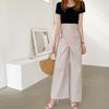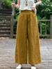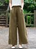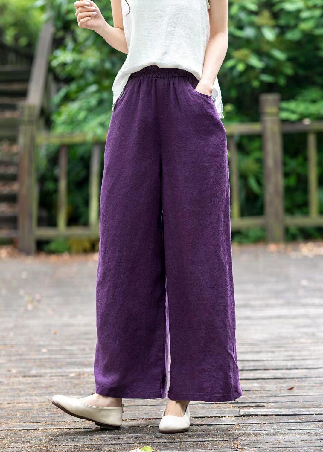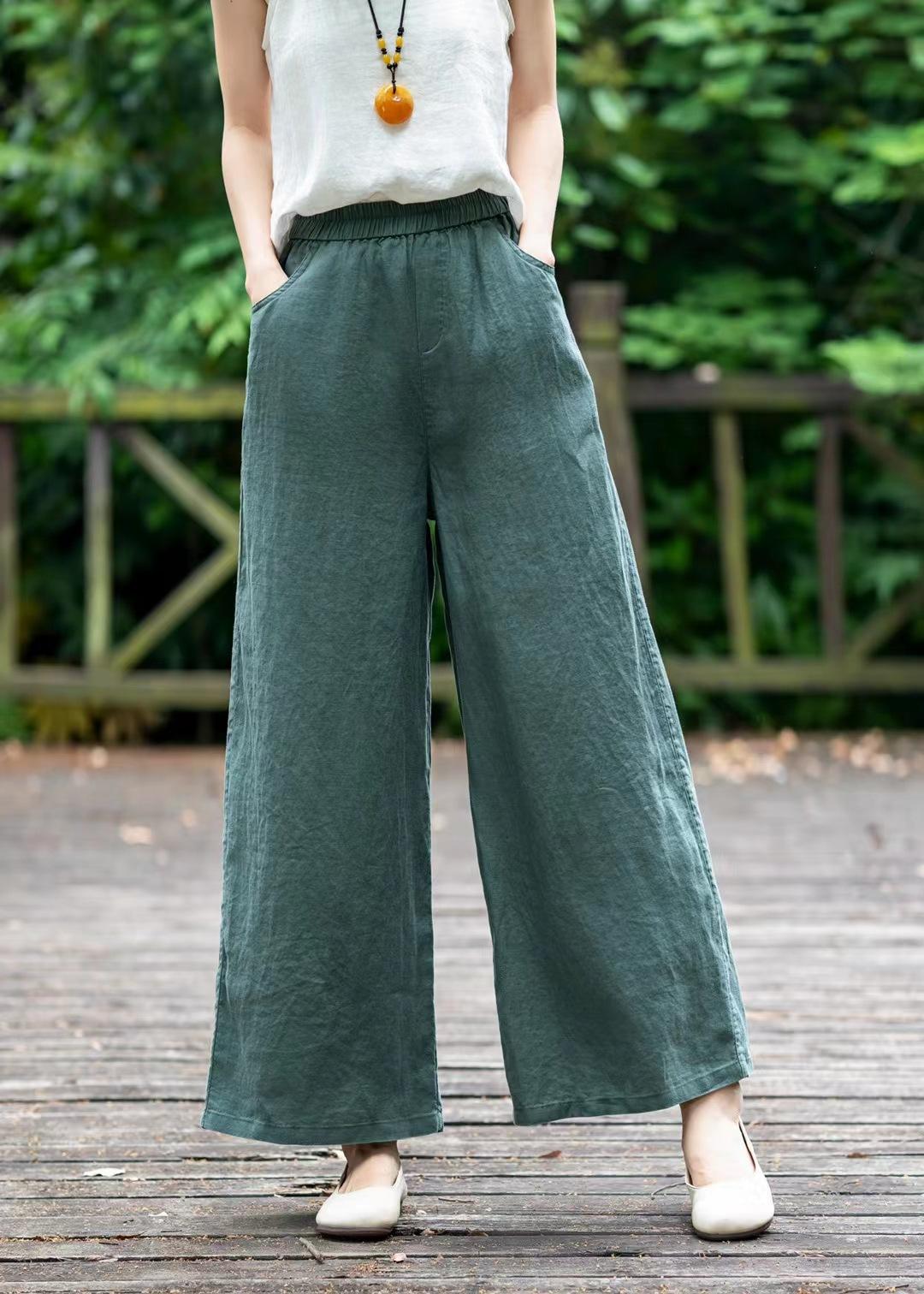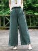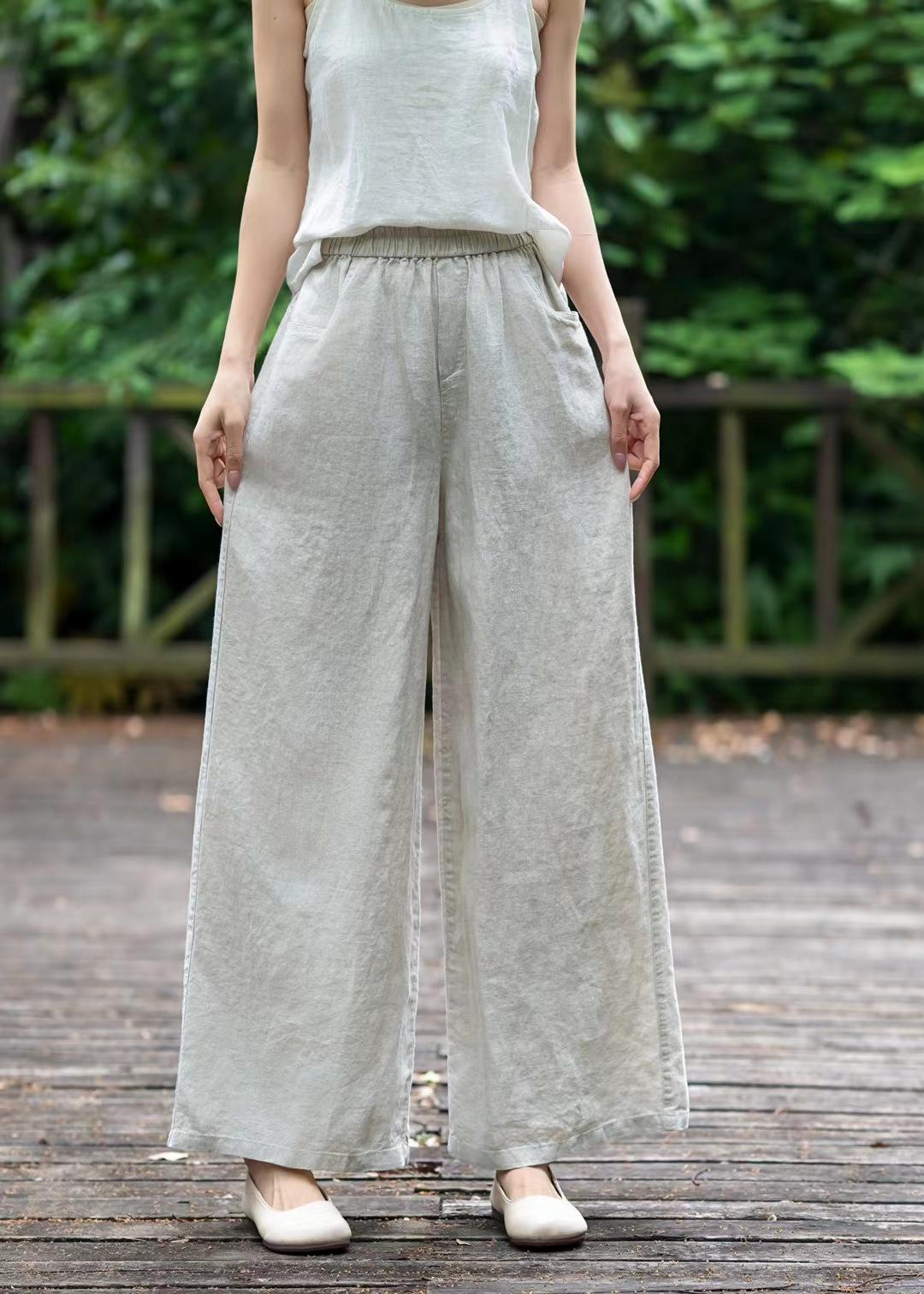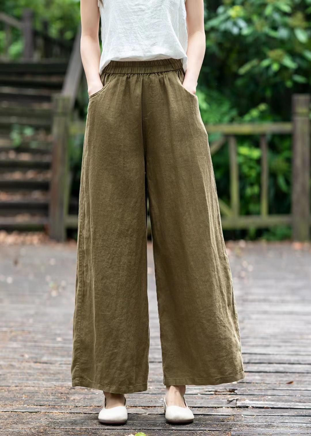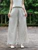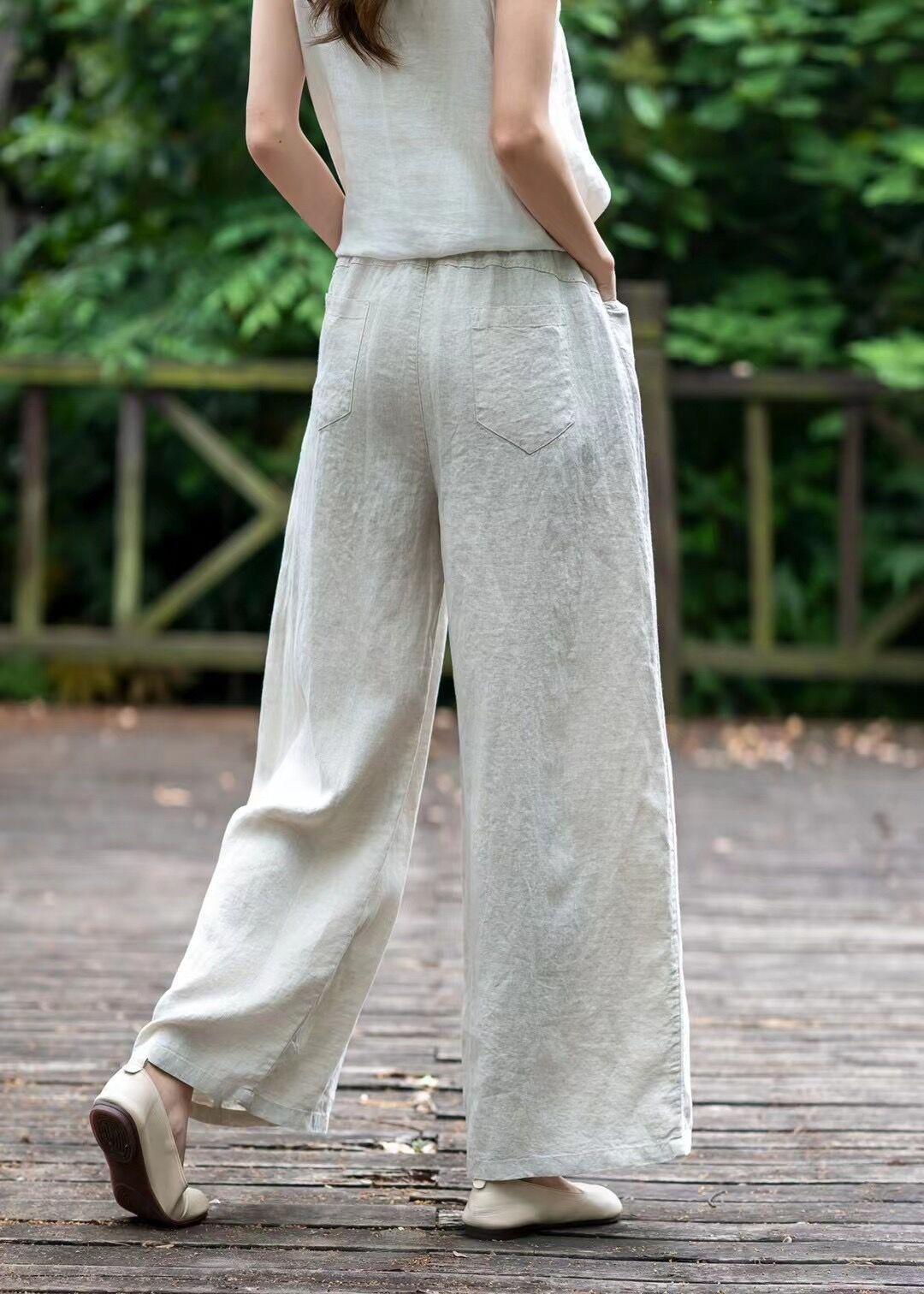 Pantalones de lino holgados de pierna ancha con cintura elástica y diseño de codo, de verano, elegantes, estilo retro, rectos y adelgazantes, de color liso