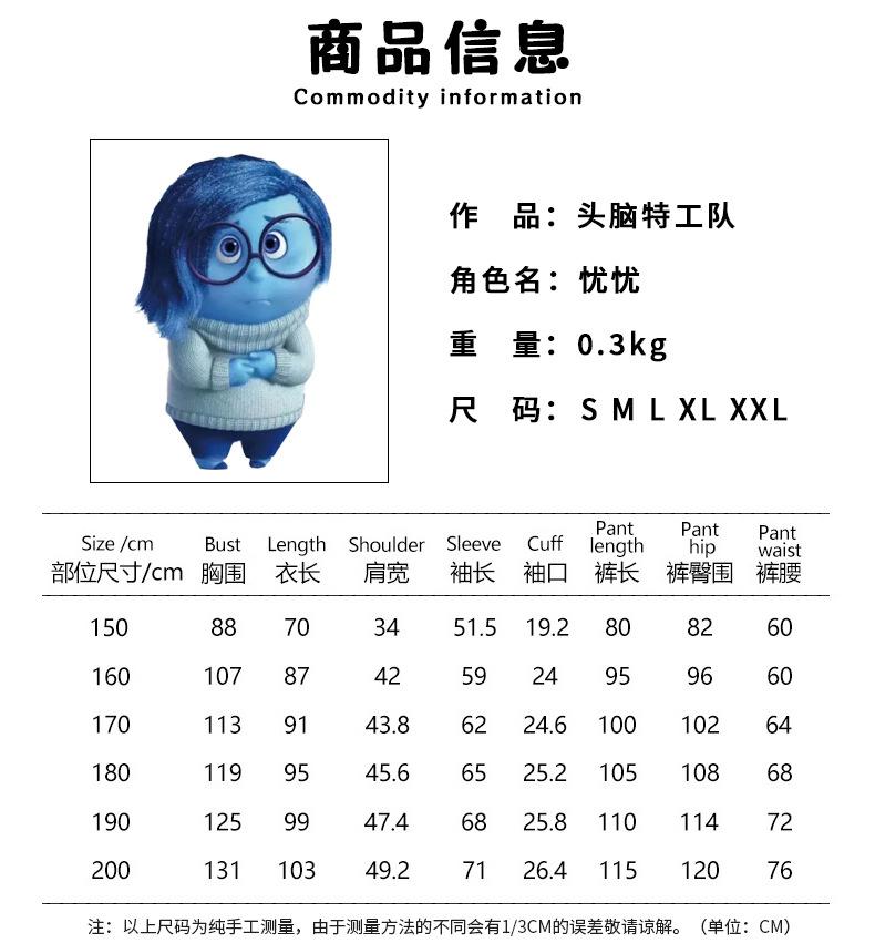 Equipo de Servicio Secreto Mental cos Ropa Ira Ira Animación Secundaria Vestido infantil cosplay Disfraz de actuación de Halloween