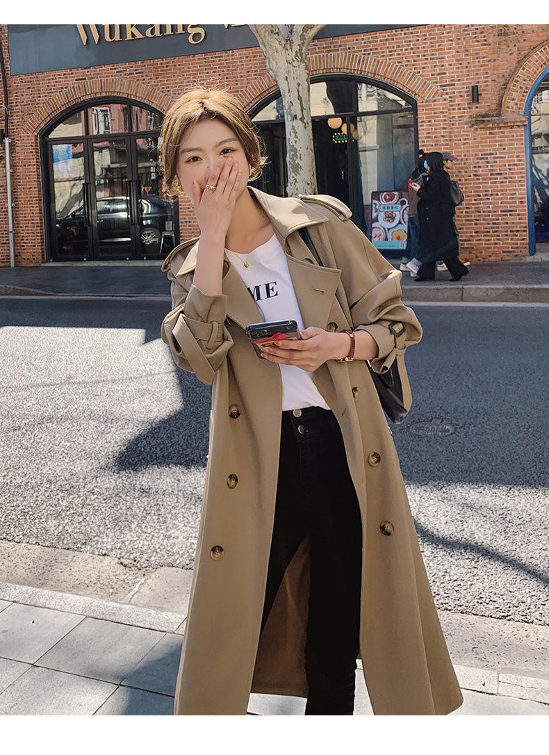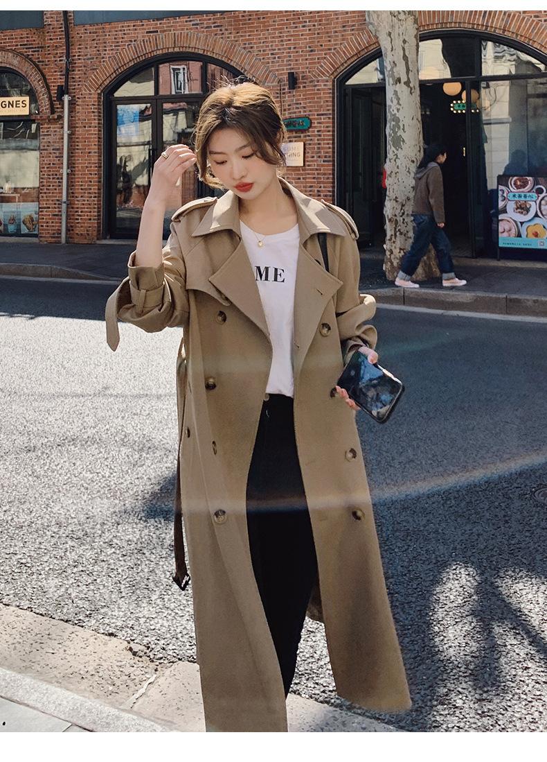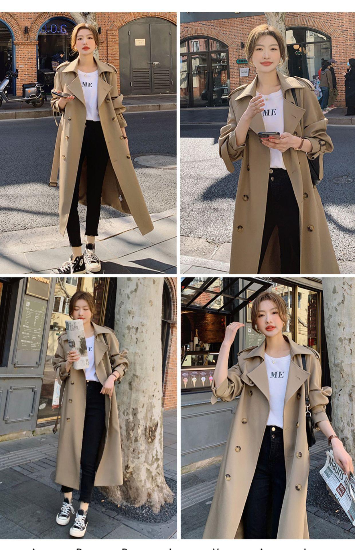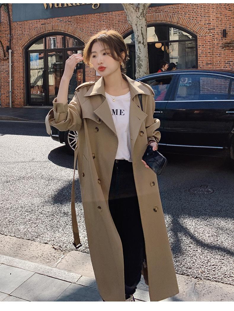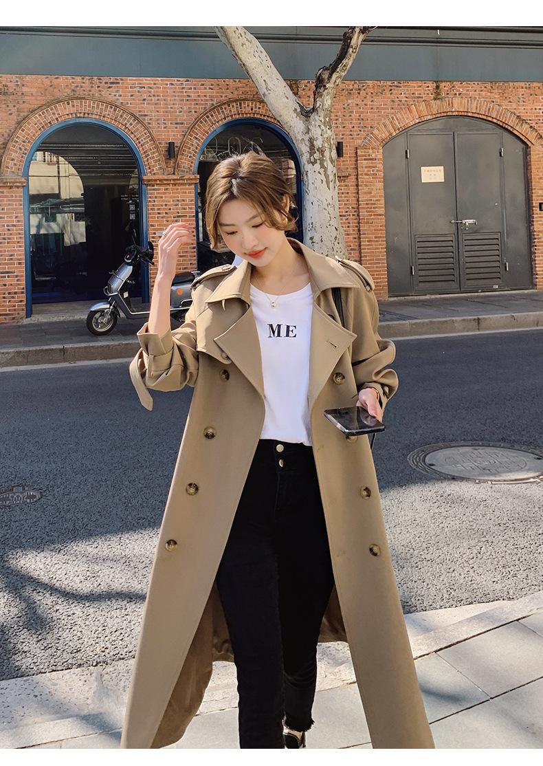 Abrigo Cortavientos de Comercio Exterior para Mujer 2024 Nuevo Primavera y Otoño Largo Medio Estilo Coreano Estilo Británico caqui Abrigo de Principios de Otoño