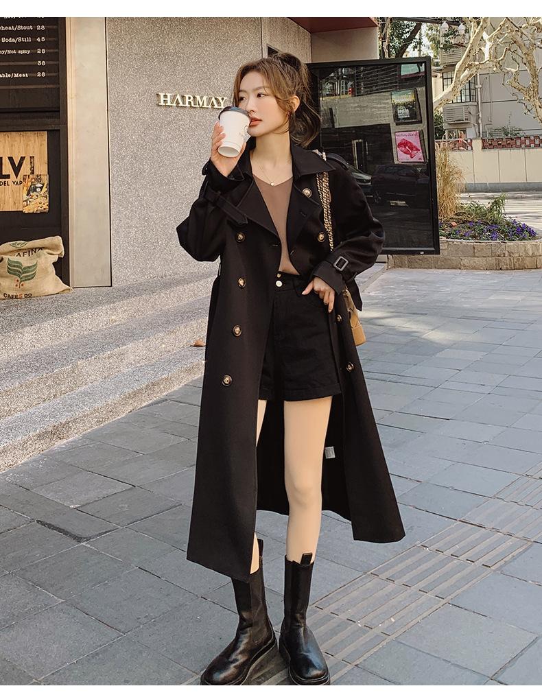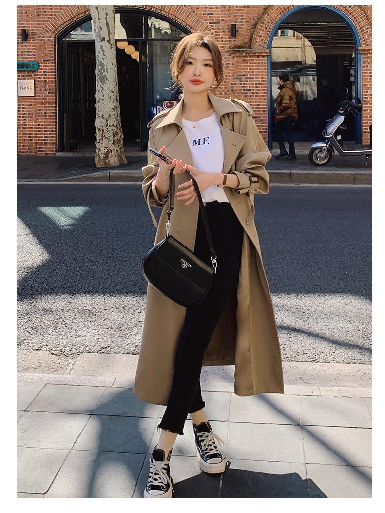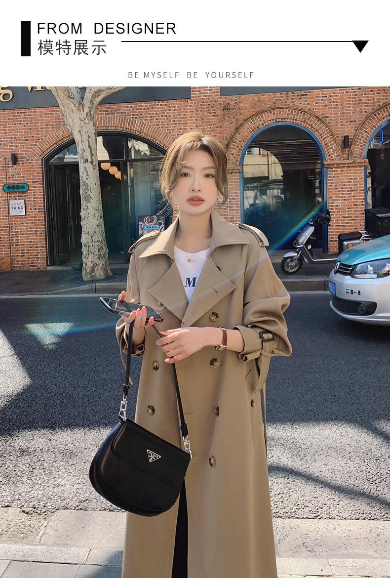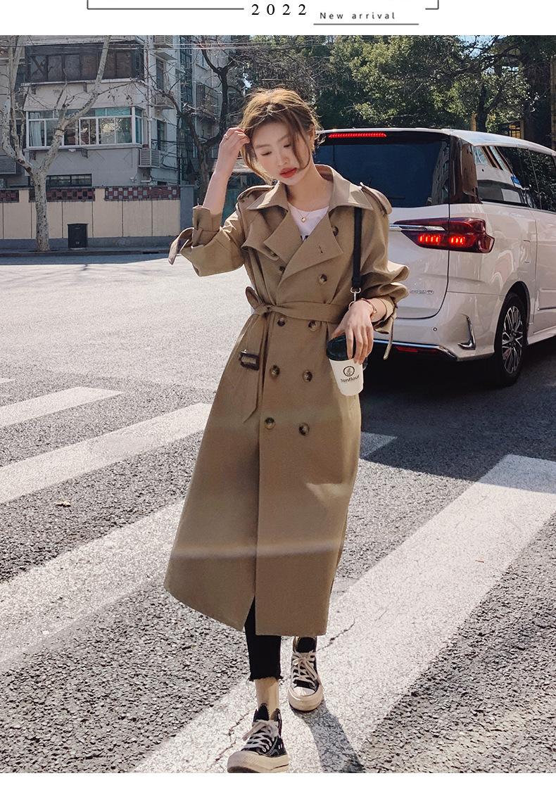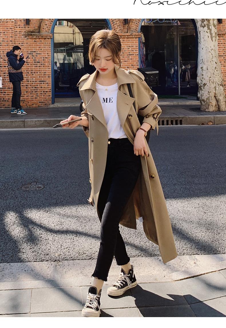 Abrigo Cortavientos de Comercio Exterior para Mujer 2024 Nuevo Primavera y Otoño Largo Medio Estilo Coreano Estilo Británico caqui Abrigo de Principios de Otoño