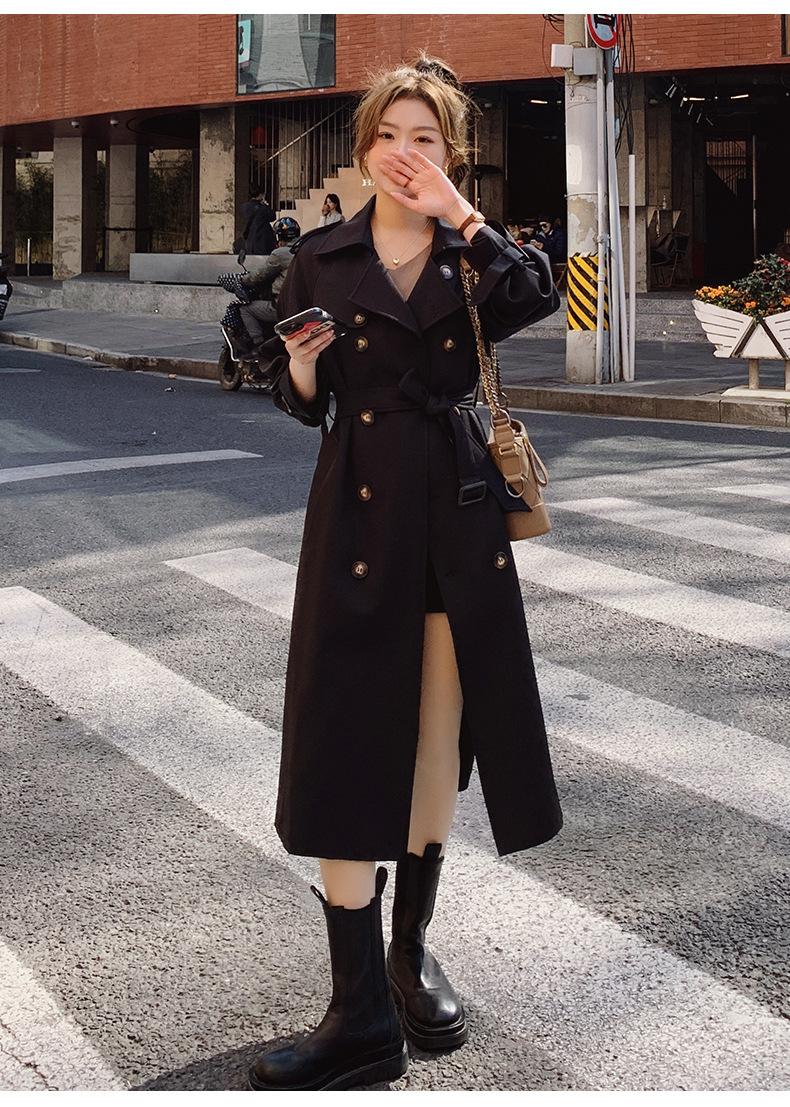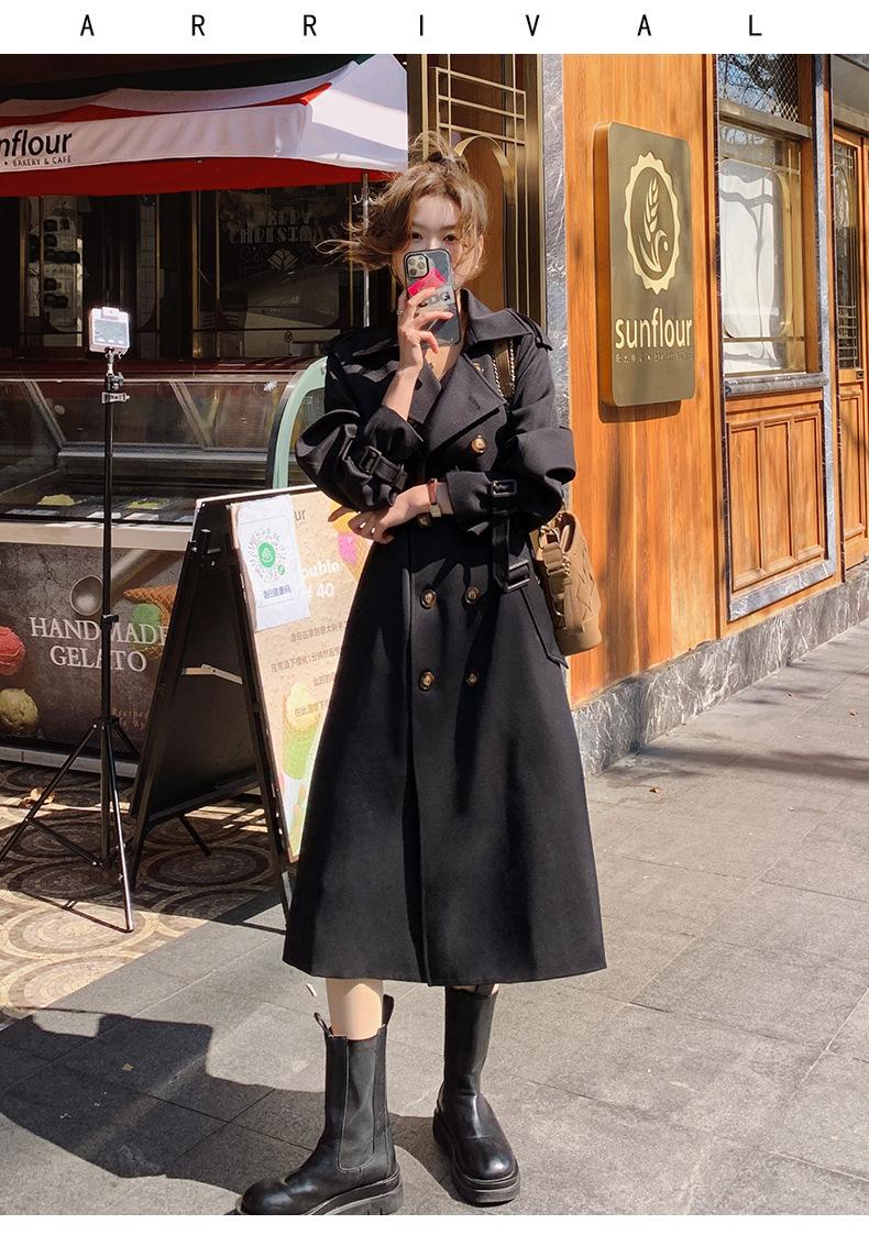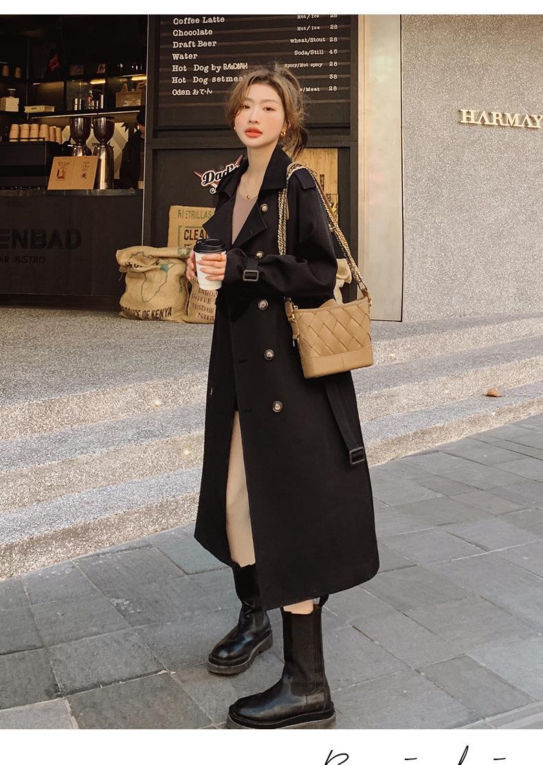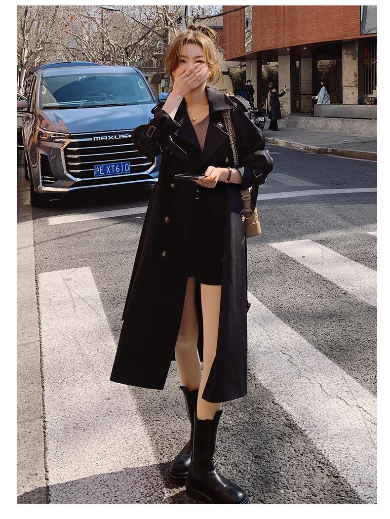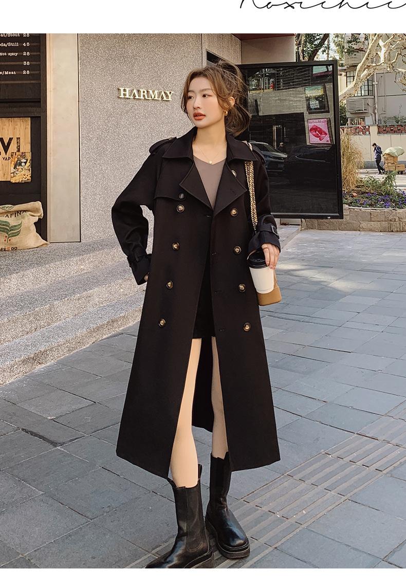 Abrigo Cortavientos de Comercio Exterior para Mujer 2024 Nuevo Primavera y Otoño Largo Medio Estilo Coreano Estilo Británico caqui Abrigo de Principios de Otoño