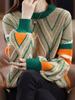 Moda Otoño e Invierno Jersey de Cuello Redondo Combinación de Colores Versátil Cachemira Tejido Grueso Suéter para Mujer Holgado Talla Grande Suéter Básico para Mujer
