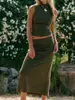 Conjunto de dos piezas de moda para mujer, con cuello medio alto, sin mangas, falda a la cadera, dulce y picante, para verano