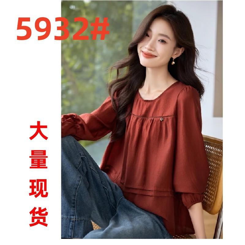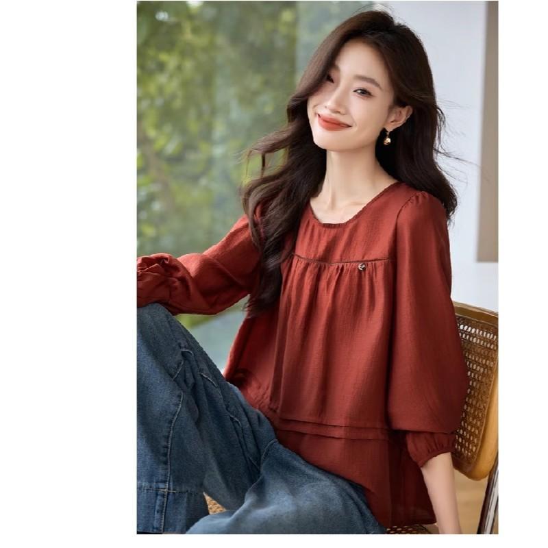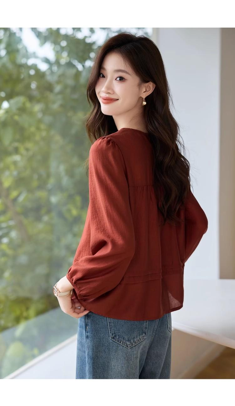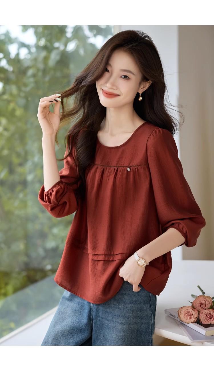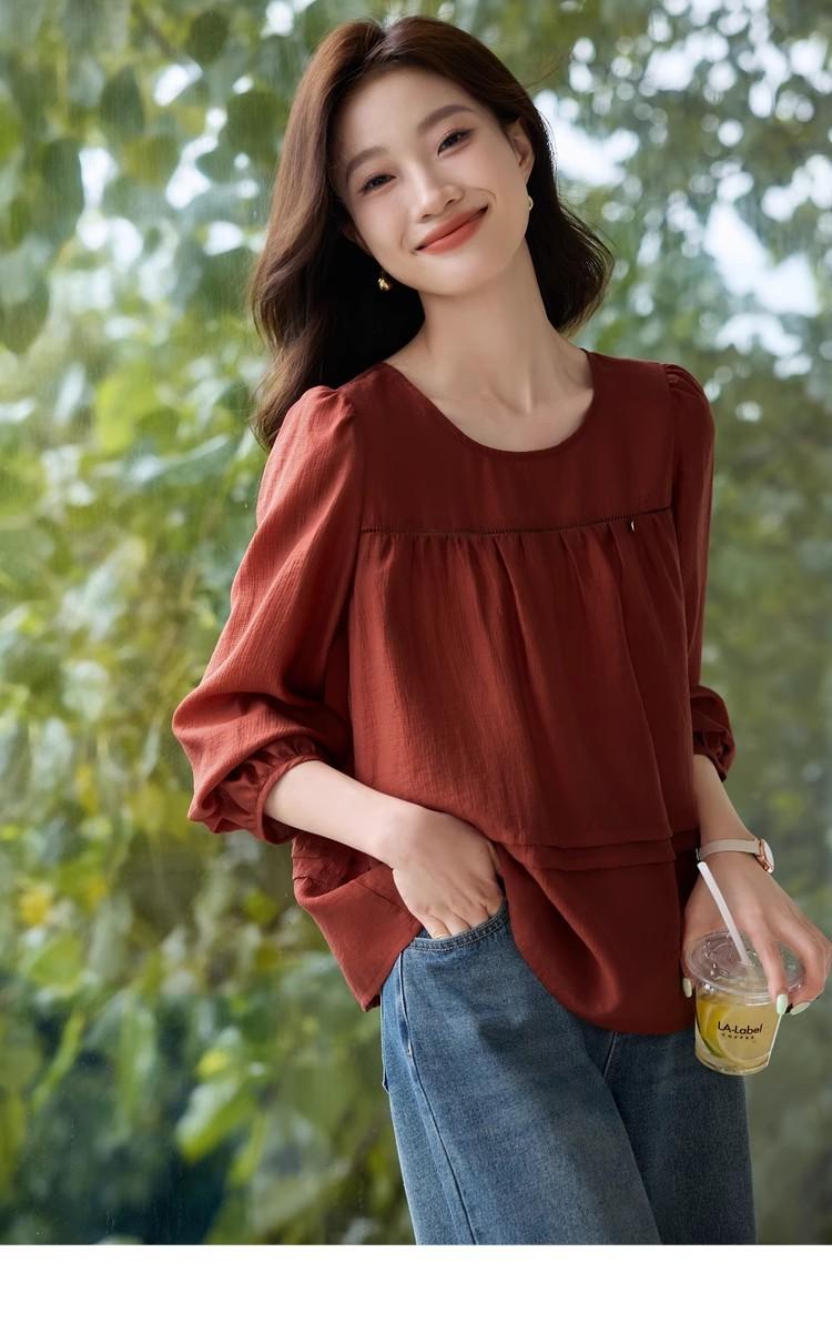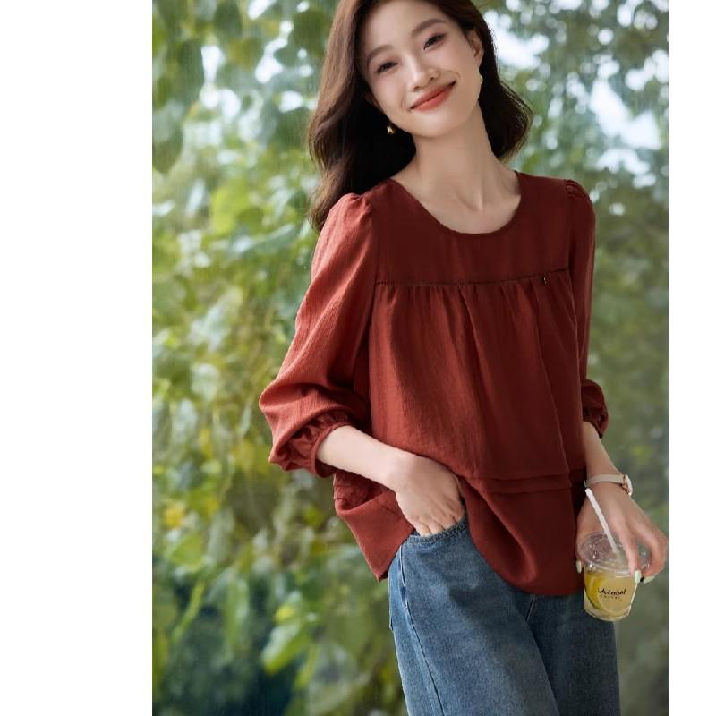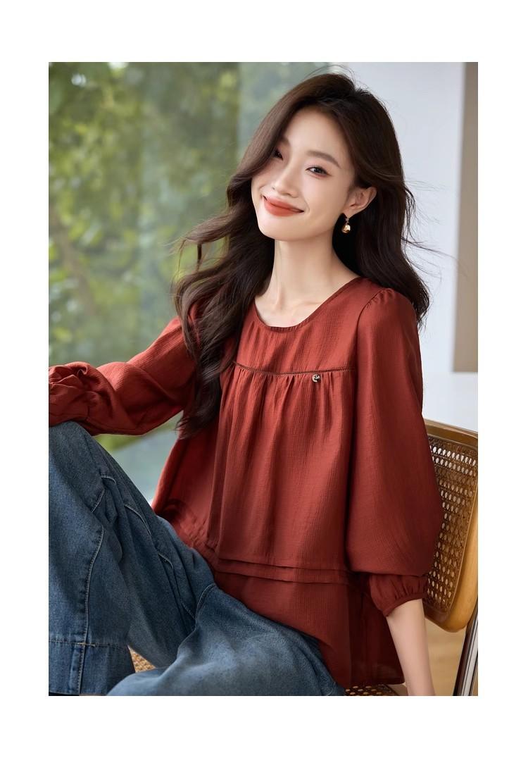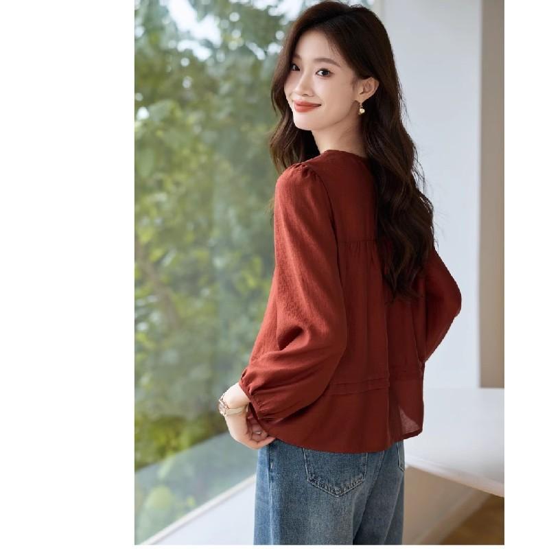 Compra Camisa de cuello redondo con encaje romántico francés simple, nueva camisa elegante de corte entallado para otoño de 2024 al por mayor en Joom.pro