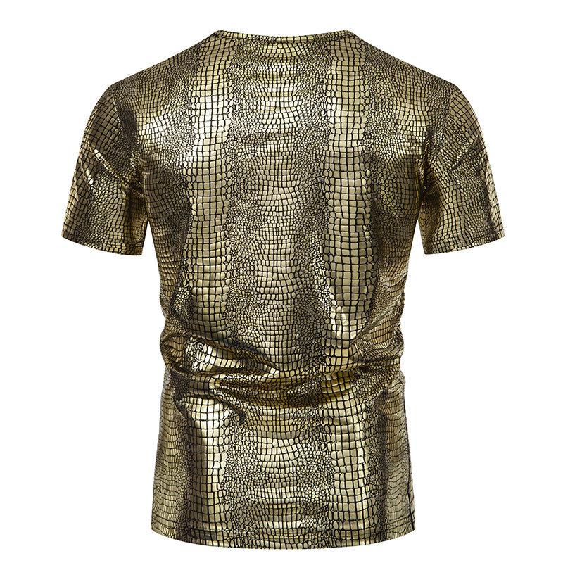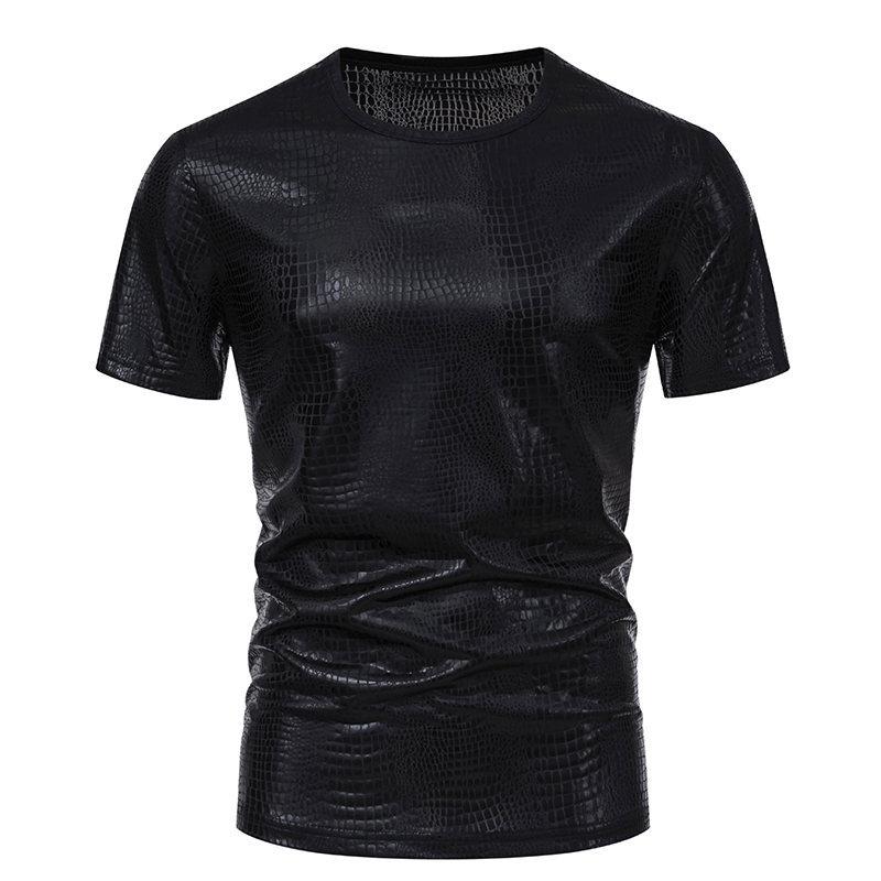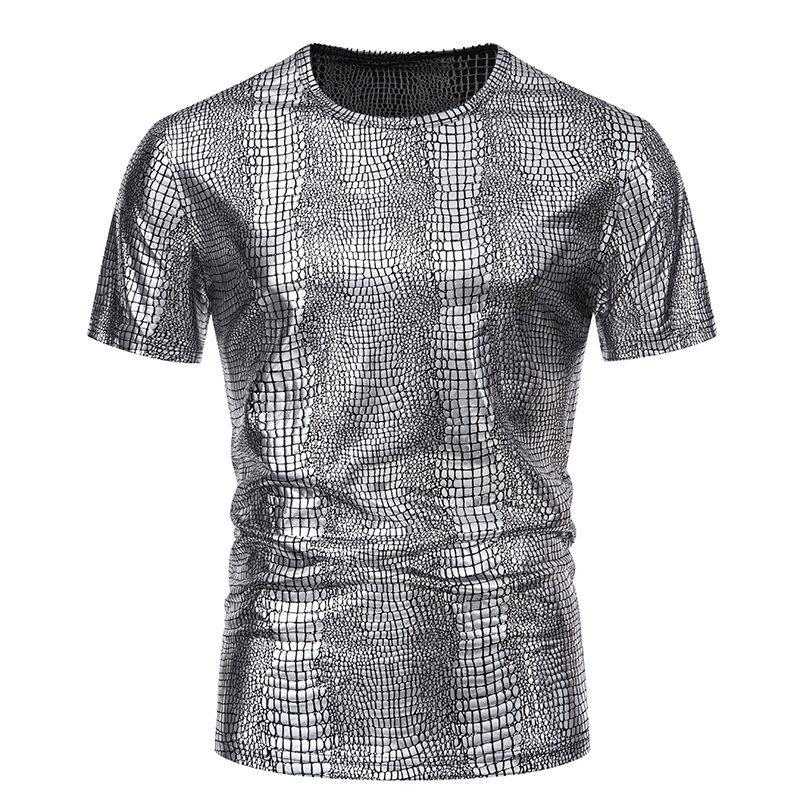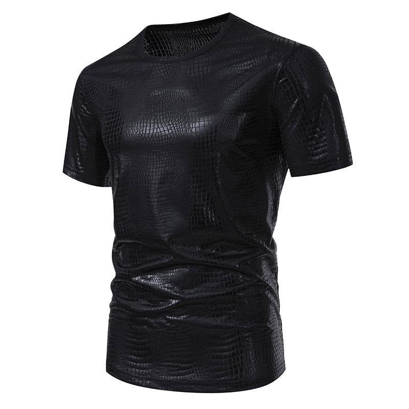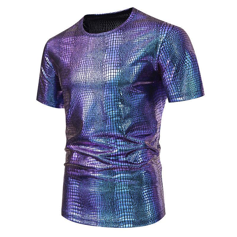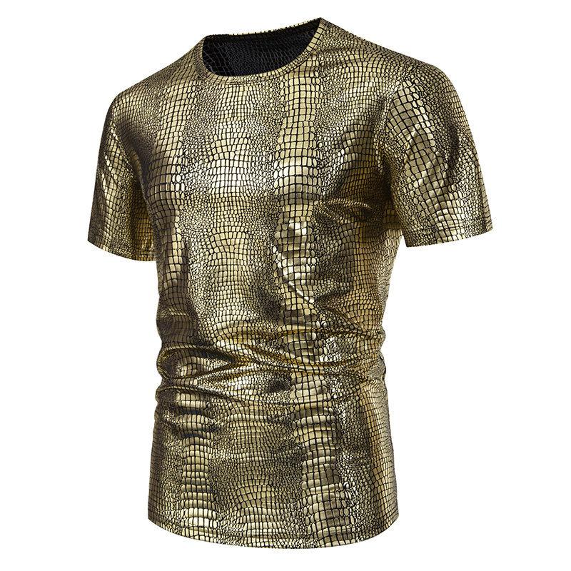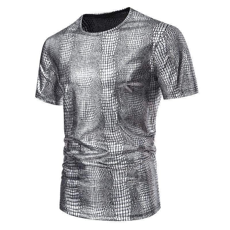 Nueva camiseta de verano transfronteriza de Amazon para hombre, estilo europeo y americano, de moda, de manga corta brillante y cuello redondo, talla europea para hombre.