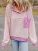 Sudadera con capucha para mujer 2025 Otoño e Invierno Nuevo estilo Patchwork de color contrastante Raglán Holgado Casual Estilo americano Perezoso Top con capucha
