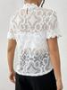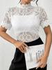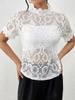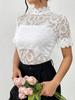 Europeo y Americano Transfronterizo 2025 Nuevo Elegante Color Puro Cuello Mao Pequeño Encaje Empalmado Encaje Manga Corta Camiseta Tops para Mujer
