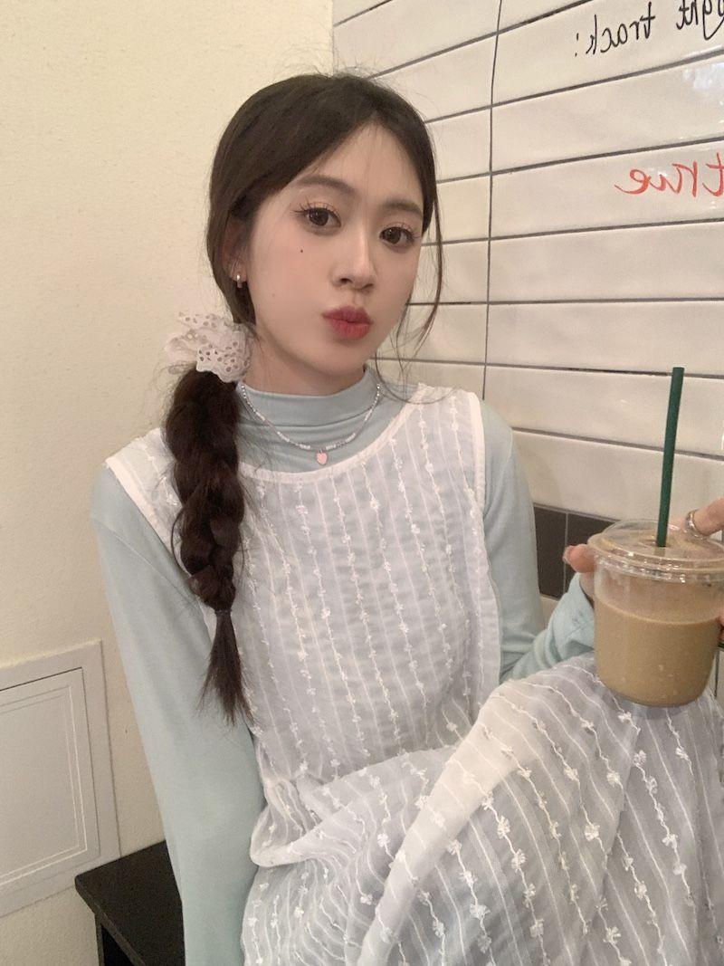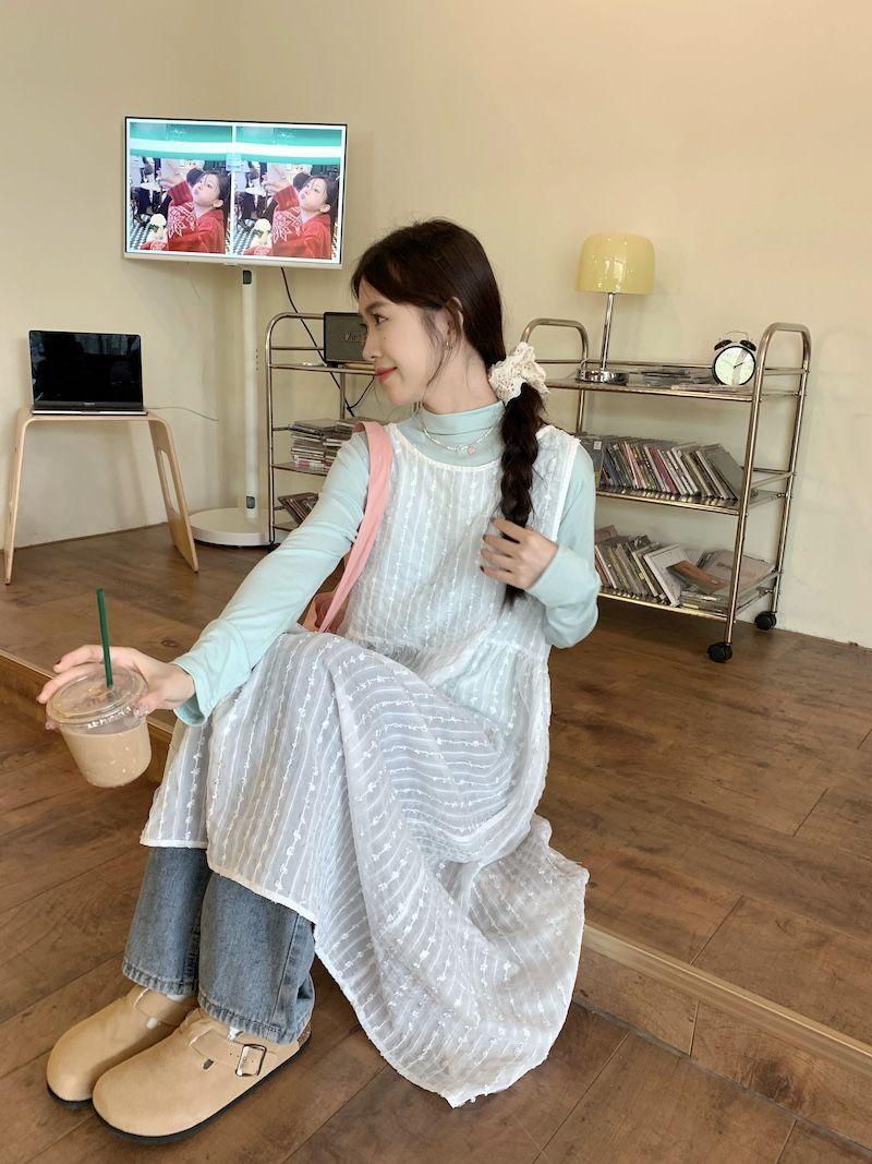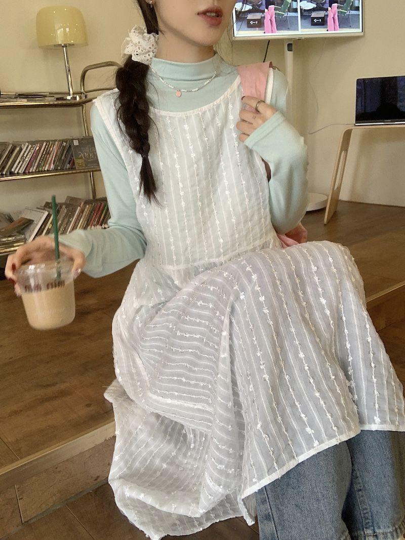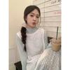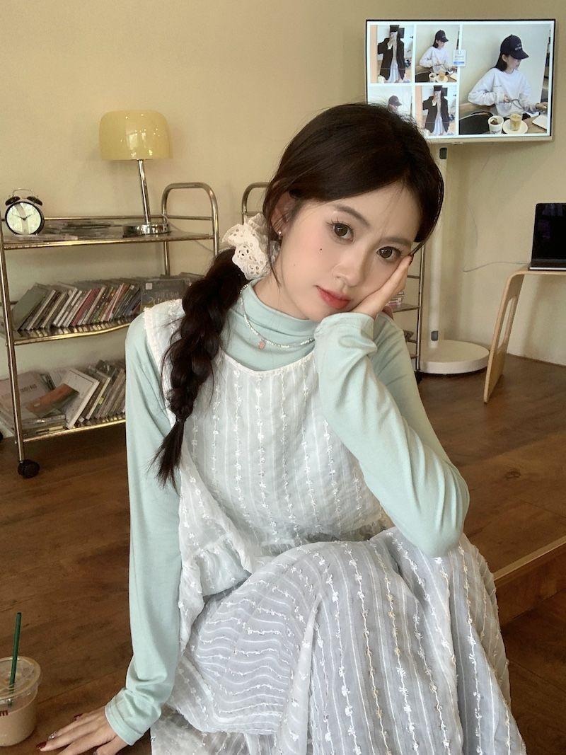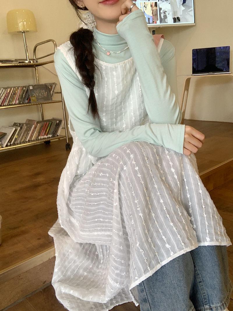 Traje de moda Vestido chaleco blanco suave para mujer Primavera Apilado con camiseta básica de cuello medio alto Conjunto de dos piezas 0
