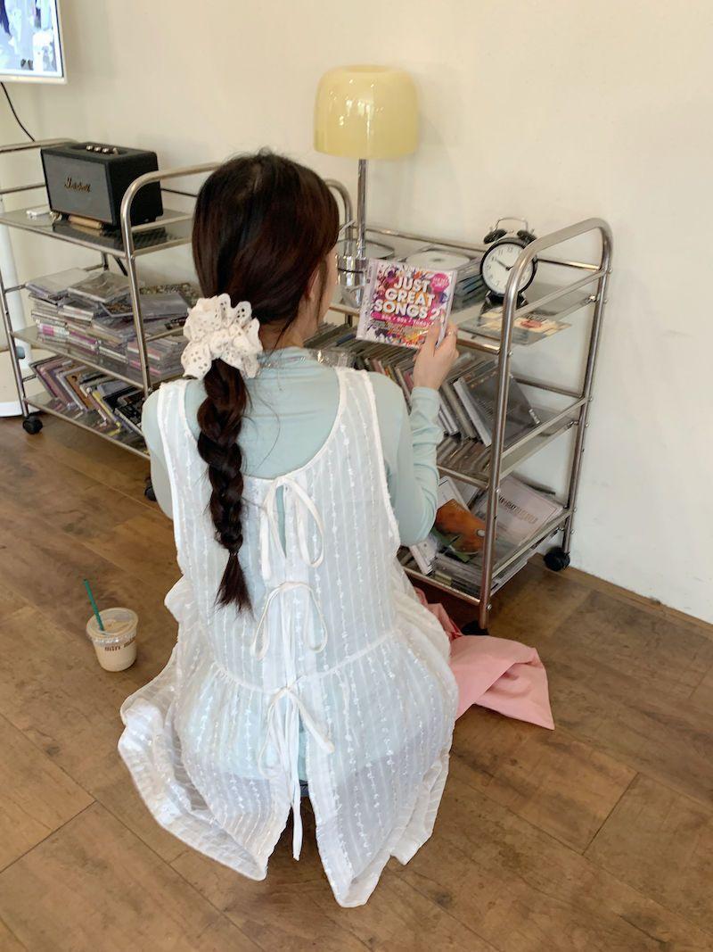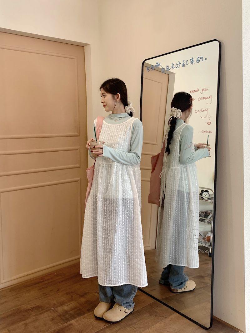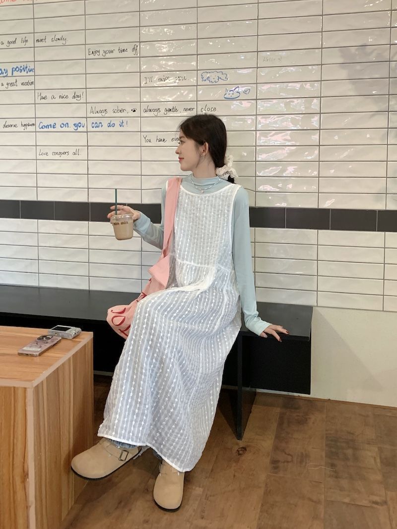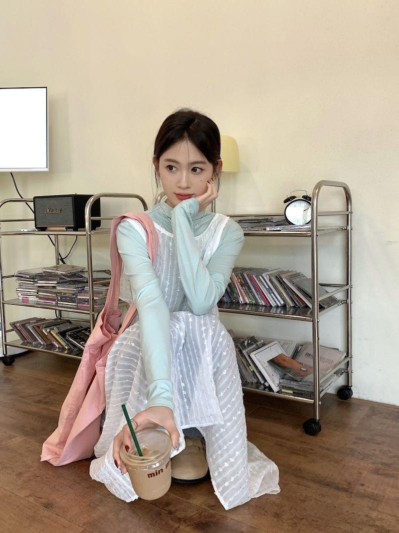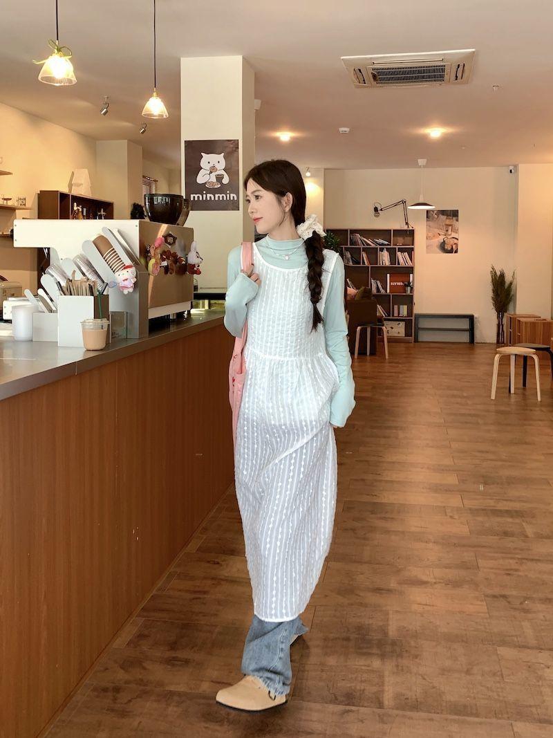 Traje de moda Vestido chaleco blanco suave para mujer Primavera Apilado con camiseta básica de cuello medio alto Conjunto de dos piezas 0