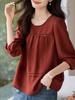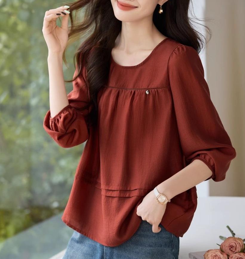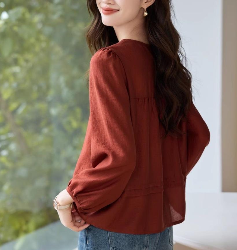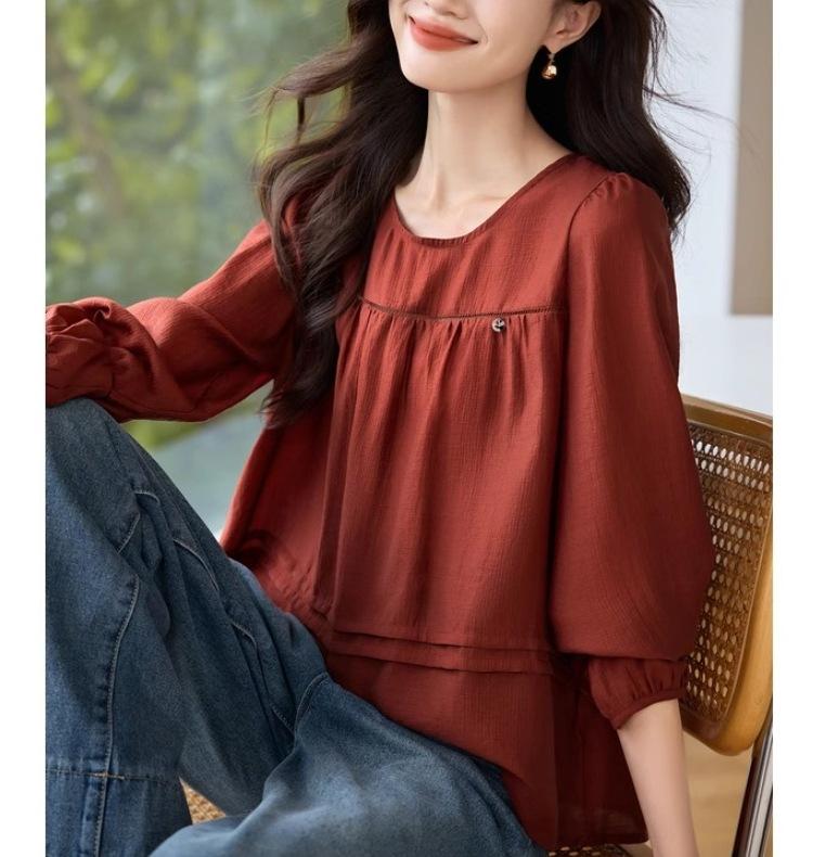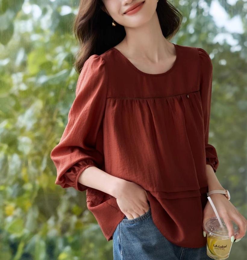 Compra Camisa de cuello redondo con encaje romántico francés simple, nueva camisa elegante de corte entallado para otoño de 2024 al por mayor en Joom.pro