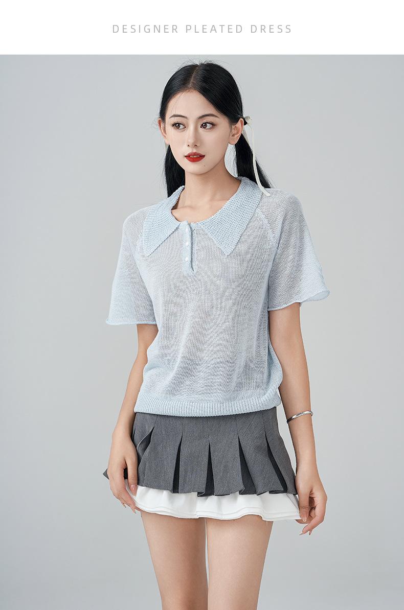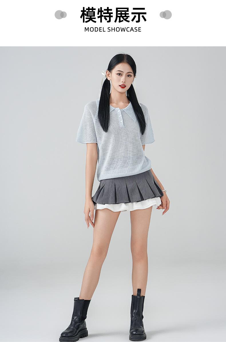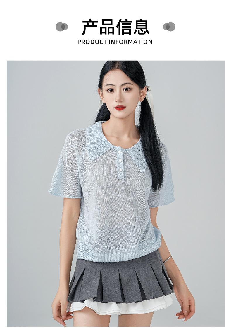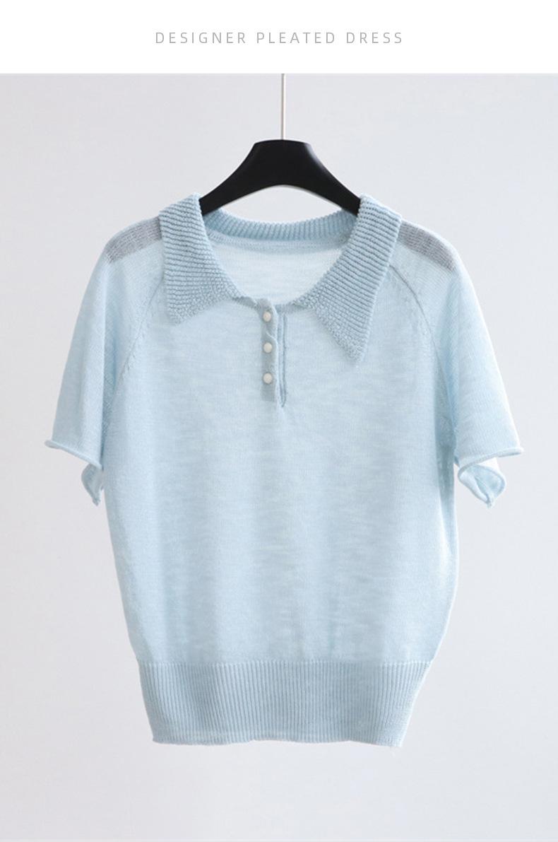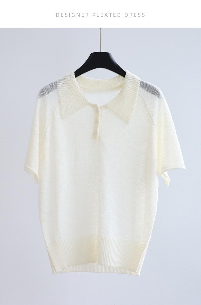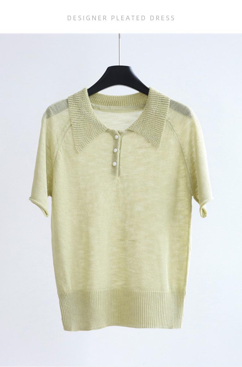 Compra Camiseta de Punto de Manga Corta con Solapa Chic Estilo Francés para Mujer Verano Delgada Fresca Transpirable Adelgazante Combinable Top de Alta Gama al por mayor en Joom.pro