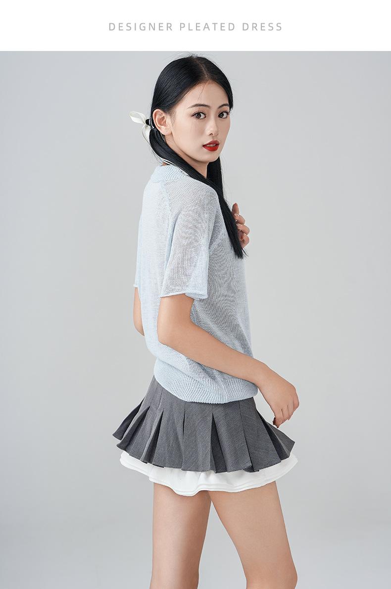 Camiseta de Punto de Manga Corta con Solapa Chic Estilo Francés para Mujer Verano Delgada Fresca Transpirable Adelgazante Combinable Top de Alta Gama